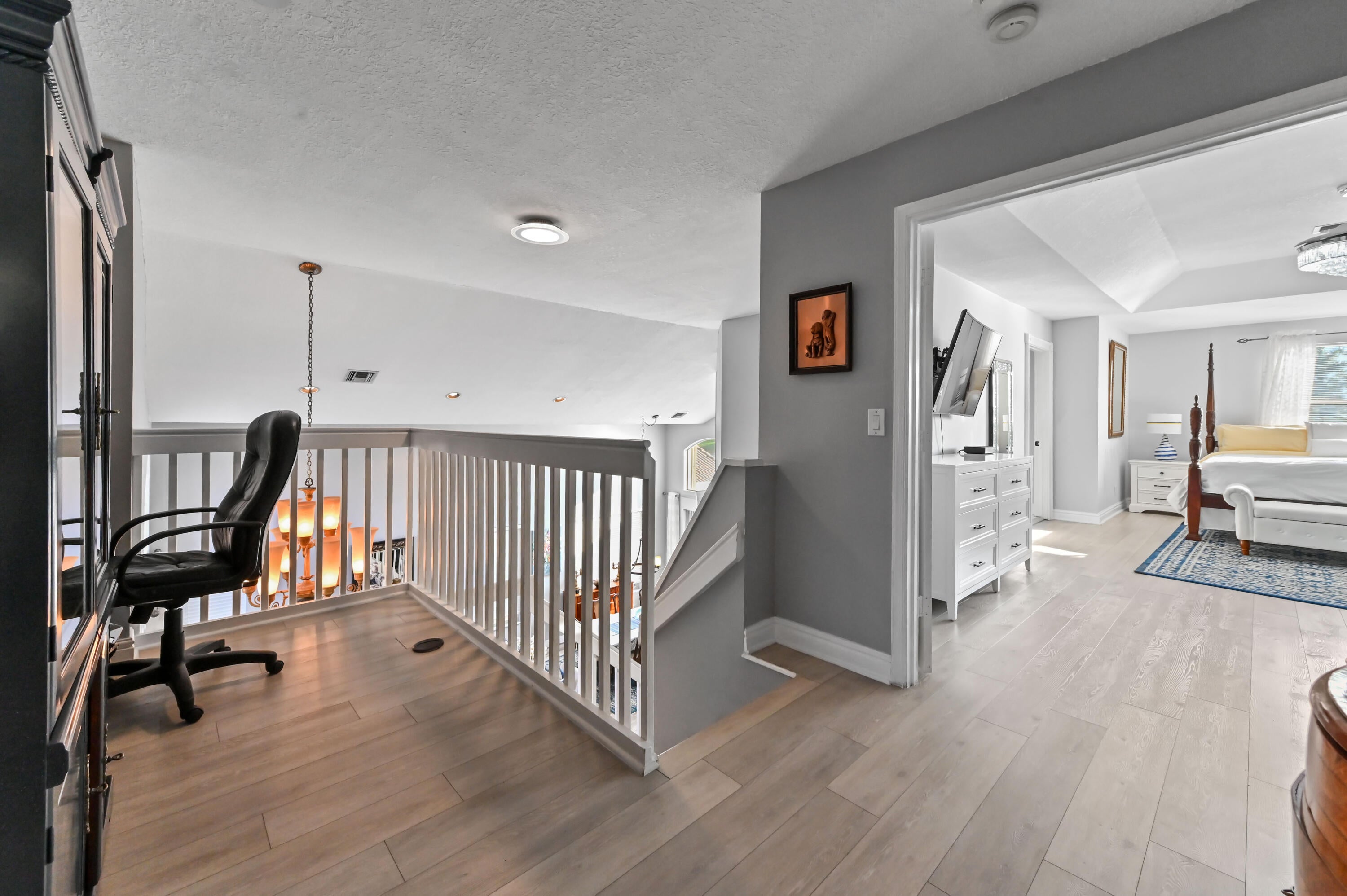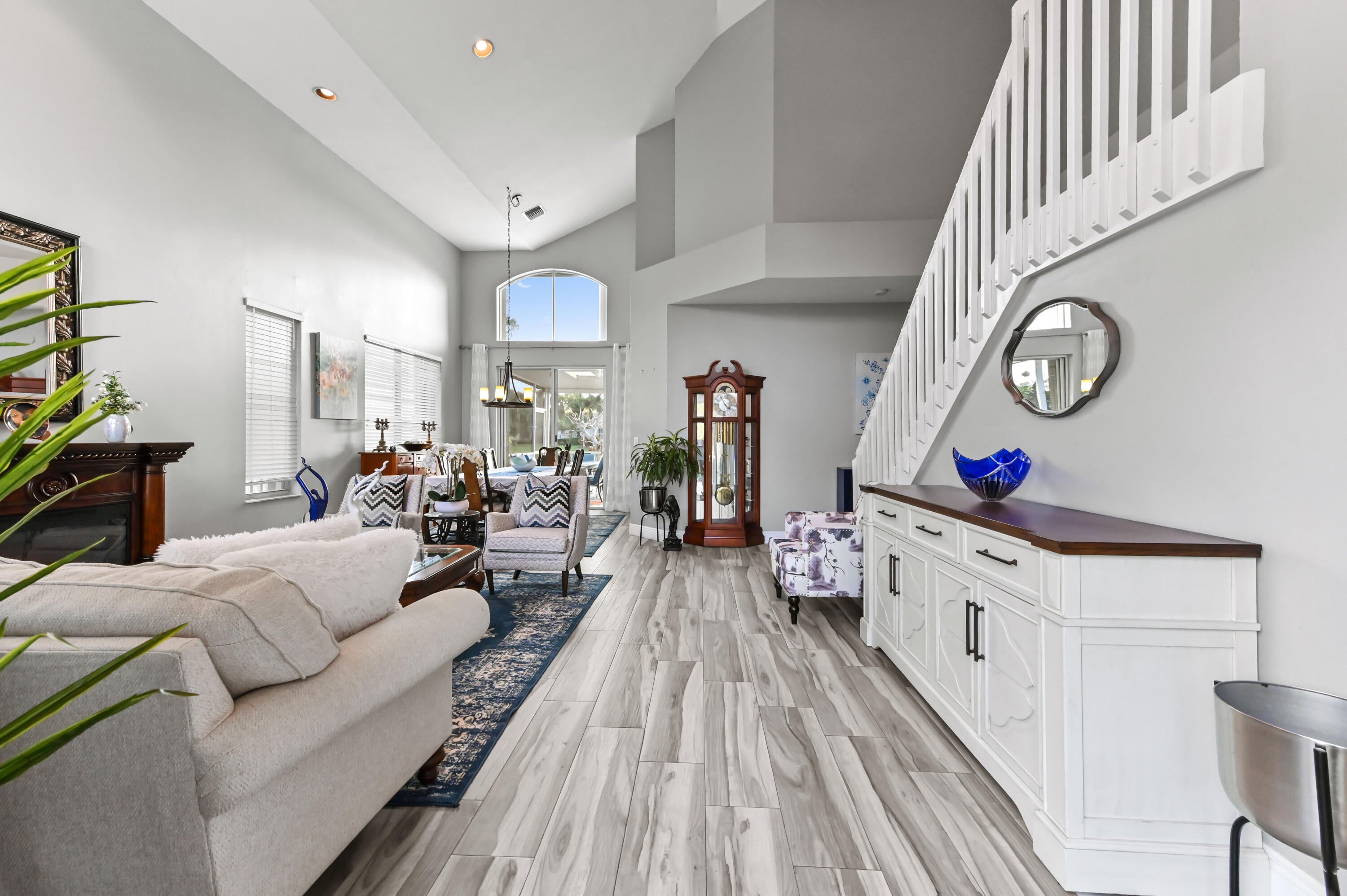 Welcome to this spacious waterfront 2-story home located in the desirable Lake Charleston community. Located in school zone with 4 A-rated schools. NEW ROOF!!! Offering 2,617 sq ft of living space, this residence features 4 bedrooms and 3 full bathrooms with a well-designed layout ideal for comfortable living and entertaining.Step inside through the foyer to a large living room highlighted by vaulted ceilings, and upgraded flooring creating an open and airy atmosphere. The upgraded kitchen features quartz counter tops, new cabinets, beautiful backsplash, a designer center island, new appliances, ample cabinet storage, and a large pantry, seamlessly connecting to the family room with a fireplace. A laundry room on the first floor with a washer and dryer adds everyday convenience.The large primary suite is upstairs and offers 2 walk-in closets, upgraded vanity with dual sinks, and a separate soaking tub and beautiful shower with a frameless glass enclosure. Additional features include a loft area, generously sized bedrooms, full laminate flooring on the stairs & entire 2nd floor and accordion shutters for storm protection. Enjoy tranquil lake views from the screened and covered patio, with a backyard offering space for a potential pool, perfect for relaxing or entertaining while overlooking the water. Lake Charleston amenities include beautifully landscaped walkways, seven fishing lakes, a soccer field, three playgrounds, two swimming pools, two tennis courts, two basketball courts, and two volleyball courts. Residents also enjoy access to Lake Charleston Park, a 9+ acre park with lighted baseball and softball fields, a children's playground, snack stands, and restrooms. A wonderful opportunity to enjoy waterfront living in a vibrant, amenity-rich community.