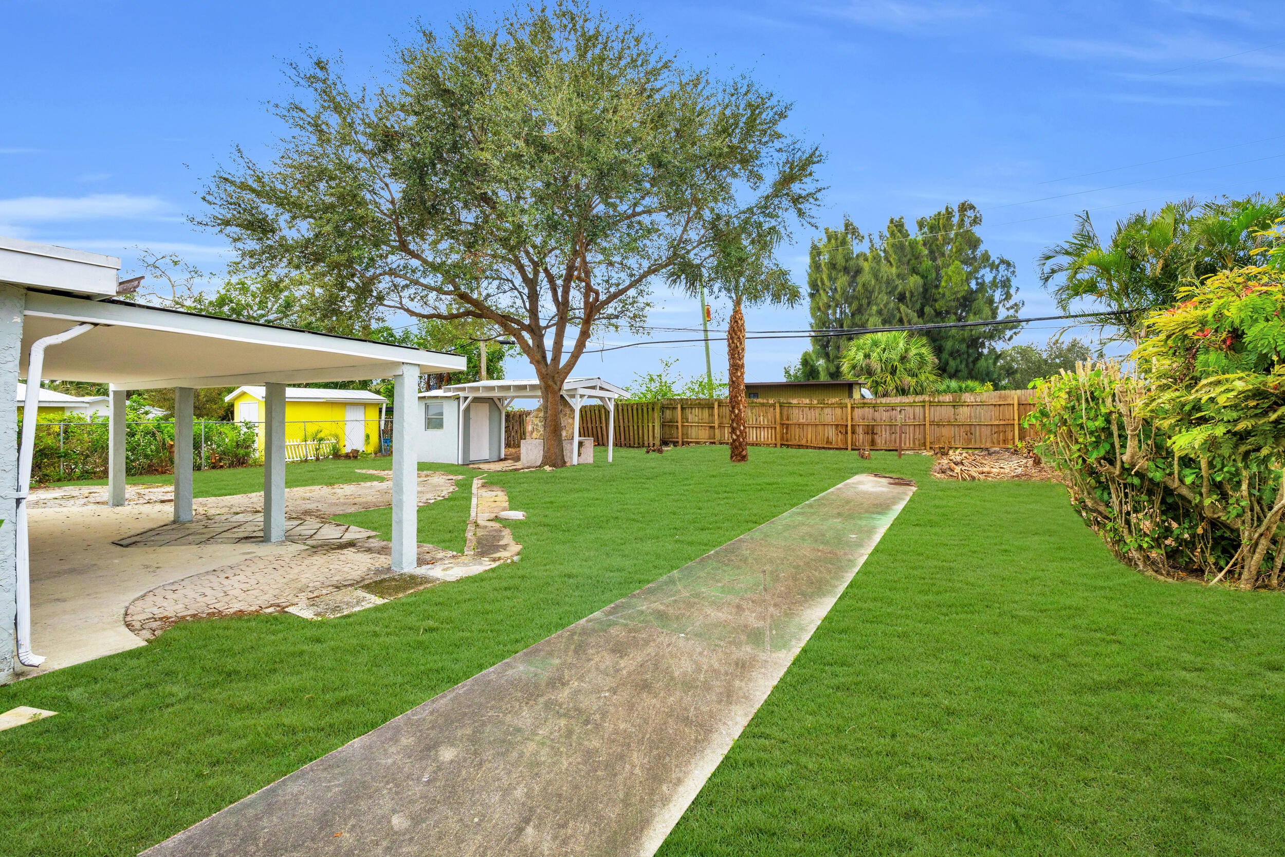 Covered Patio, Fence, Open Patio, Shed