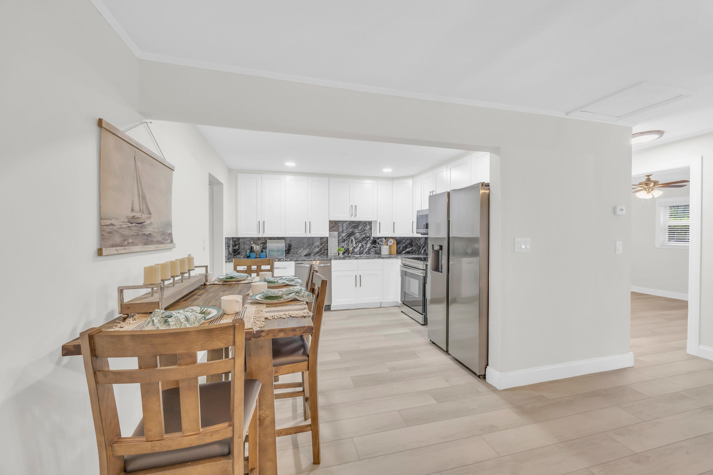 Exquisitely remodeled 3 bedroom, 2 bath residence located in the coveted Jensen Beach area. This refined home showcases high end finishes and thoughtful design throughout, featuring a beautifully updated kitchen, spa inspired bathrooms, and sleek contemporary flooring. The open, light filled floor plan offers effortless indoor living and an elevated sense of comfort and style. Ideally positioned just minutes from pristine beaches, upscale dining, and boutique shopping, this move in ready property delivers coastal luxury at its finest. Schedule your private showing today and experience elevated Jensen Beach living firsthand.