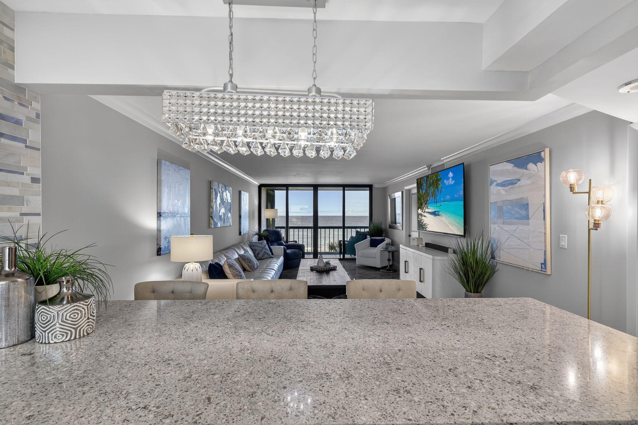 Effortless ownership from day one in this oceanfront condo on Hutchinson Island, furnished and move-in ready with all assessments paid. This 2-bedroom residence offers panoramic ocean views and has been completely redesigned, featuring a new kitchen and bathrooms, updated electrical and plumbing, impact windows and shutters, and a private washer and dryer. Just bring your suitcase and start enjoying coastal living immediately.The community offers private beach access, two pools, tennis, pickleball, and so much more, creating a vibrant and social oceanfront lifestyle. Beach chair and shell umbrella rentals make effortless days by the ocean part of everyday life.Major building improvements are complete, including concrete restoration, a new 2025 roof, a passed Milestone Inspection,and a completed SIRS study with strong reserves, providing rare peace of mind for today's oceanfront condo buyer. A rare opportunity to own a worry-free, furnished oceanfront condo just steps from the sand.