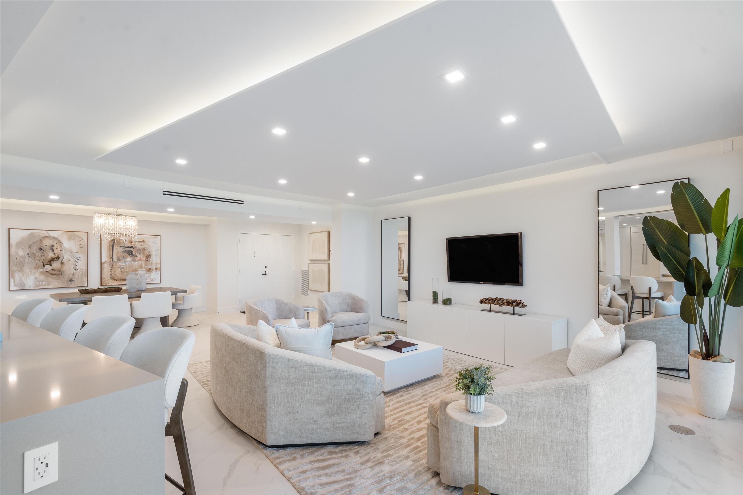 Highly desired SPLIT-BEDROOM floor plan with INTRACOASTAL VIEWS from the 5TH floor, visible from every bedroom. This 2 bed/2 bath residence offers 1,870 sq ft and features TWO PRIMARY SUITES. Completely upgraded in 2025 with a true quality renovation, including all new electrical and plumbing, new AC, new water heater and IMPACT GLASS throughout. Modern dropped ceilings with integrated LED lighting throughout. The expansive open-concept layout features a beautifully designed chef's kitchen with Bosch appliances, ample cabinetry, and a clean, modern finish. Located in a fully renovated building with ALL ASSESSMENTS PAID IN FULL by the seller. Building offers: 24-hour concierge and security, PRIVATE BEACH CLUB, tennis courts, resort-style pool, clubhouse, gym, and a marina with boat slips.