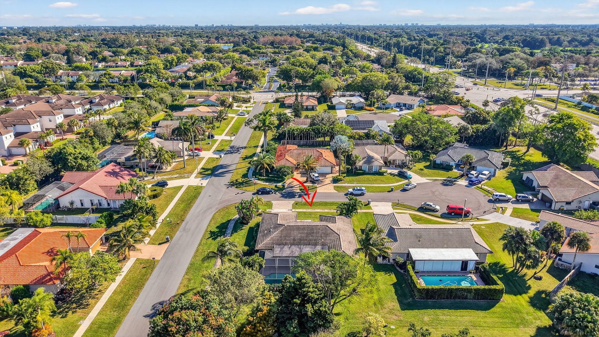 Situated on a rare oversized corner cul-de-sac lot this beautifully updated residence offers the perfect floorplan for everyday living & entertaining. Featuring vaulted ceilings, beautiful tile floors, spacious living & dining rooms plus family room. Updated kitchen offers custom wood cabinets, granite countertops, stainless appliances & breakfast bar. Large primary suite offers a spa like bath wi/dual sink vanity, soaking tub, huge open shower & oversized custom closet. Enjoy your heated salt-water filtration pool, large screened in patio great for year-round enjoyment. Arbor Wood is a charming tree-lined quiet community located in central Boca minutes to Town Center Mall, Publix, shops & the best restaurants. Home was originally a 4 bedroom with flexibility to convert back. A must see!Welcome to this exceptional light filled home that captures the relaxed lifestyle of Florida living. Instantly inviting the home offers standout curb appeal offering a brick-accented exterior and driveway that leads to your charming front porch. Enter inside to a bright open floor plan with generous living areas to enjoy. The large corner lot offers great outdoor greenspace and a spacious screened covered patio with a sparkling diamond-brite heated pool. Bask in the sun, take a dip or just relax and unwind. Plenty of space to entertain, BBQ and dine al-fresca. Friendly neighbor with sidewalks and mature lush landscaping. ROOF REPLACED IN 2018 A/C 2022 ACCORDIAN SHUTTERS (excluding one small window)