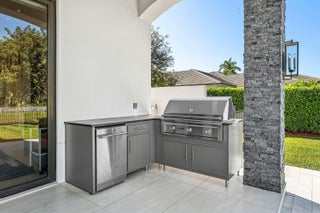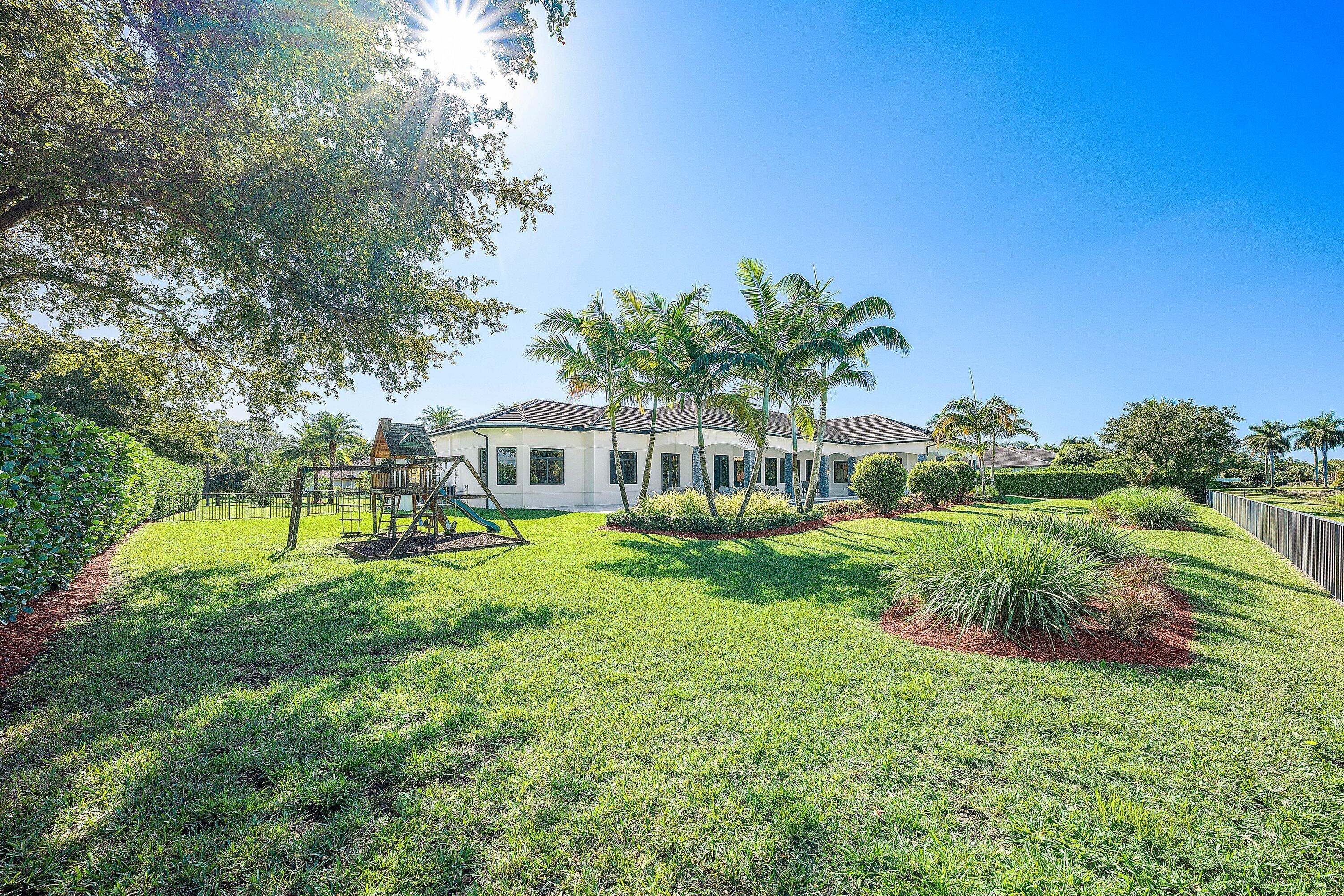 An extraordinary single-story estate offering soaring 13-foot ceilings and expansive living on a private 1-acre setting in a prestigious enclave in the heart of Boca Raton. Custom built in 2020, this residence delivers rare scale, privacy, and architectural presence, complemented by a full smart-home environment with Crestron lighting, integrated security, impact glass throughout, and a 48KW whole-house generator. Featuring 5-bedrooms, 5.5 baths, and a private office off the primary suite, the home is anchored by an expansive, beautifully appointed kitchen with top-of-the-line appliances, exceptional storage, and a massive statement island. The kitchen opens directly to a grand family room, creating a dramatic open-concept living space designed to host large gatherings.The backyard is a private resort unto itself, anchored by a sweeping lawn, resort-style pool and spa, and expansive covered outdoor living areas designed for year-round enjoyment. A fully equipped summer kitchen with Sedona gas grill creates an ideal setting for elevated outdoor entertaining, from intimate evenings to large-scale gatherings.
