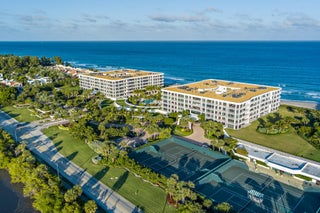 Season-ready with ocean views and a coveted southern exposure, this rarely occupied two-bedroom, two -and- a -half bath condo at the prestigious Sloan's Curve South, is offered furnished and turnkey. Move in and enjoy the Palm Beach season, with the opportunity to reimagine and transform the space at your own pace. Featuring a wrap around terrace for sunrises and sunsets! Split floor plan, open kitchen, convertible den area and tile throughout. Sloan's Curve lives like a resort and has been extensively updated, including a fitness room, spa, sauna, heated, salt water pool, pavers and spectacular atrium lobby. Two garage spaces. It offers of the most prized tennis and pickleball facilities. Sloan's Curve is a fabulous lifestyle choice, close to Worth Avenue, restaurants and the Par 3