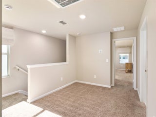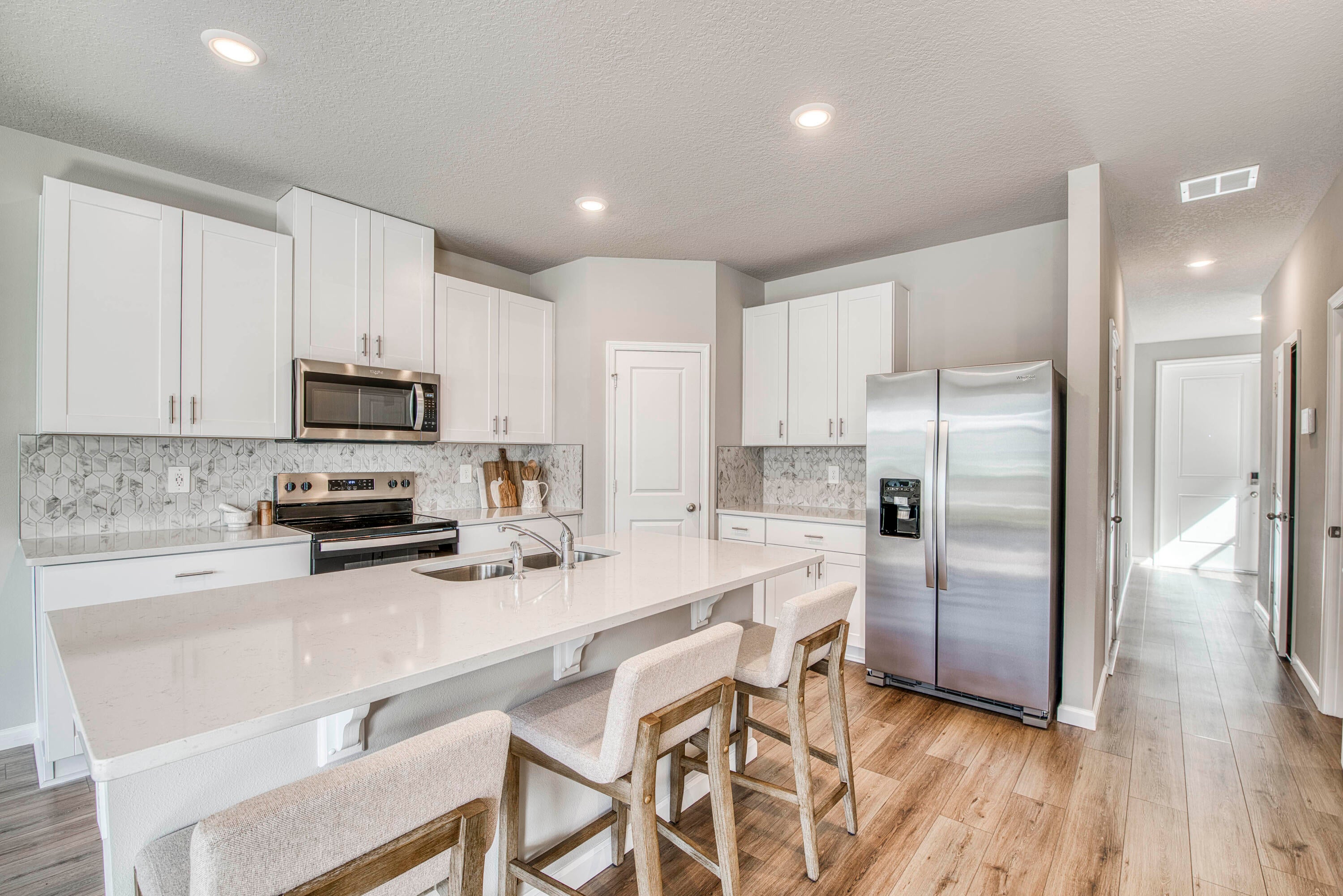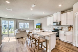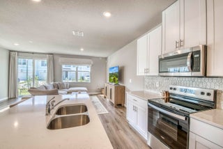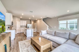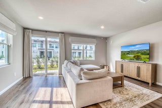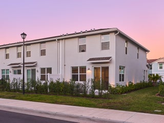 No, this home is not virtually staged; it truly is this beautiful! Light, bright and pristine, this new construction townhouse is an end unit built with extra upgrades galore! LVP wood-look flooring, white quartz countertops and a large corner pantry elevate the first floor with elegance. Upstairs, the primary boasts his & her walk in closets and motorized blinds. Custom landscape lighting surrounds the exterior and the garage a host a full gym! Smart home features include a smart thermostat, smart door lock, smart garage door opener, video doorbell, motion detectors, door sensors, and a centralized smart home hub with app control. Enjoy full peace of mind with this newer home and its full impact glass, 2024 roof, 2024 AC, 2024 water heater, security alarm system and transferablewarranties. Edgewater is a friendly, gated community surrounded by greenery and scenic lakes and hosts a beautiful community pool. 7 minutes to all your major conveniences, 20 minutes to the beach, 40 minutes to PBI Airport.