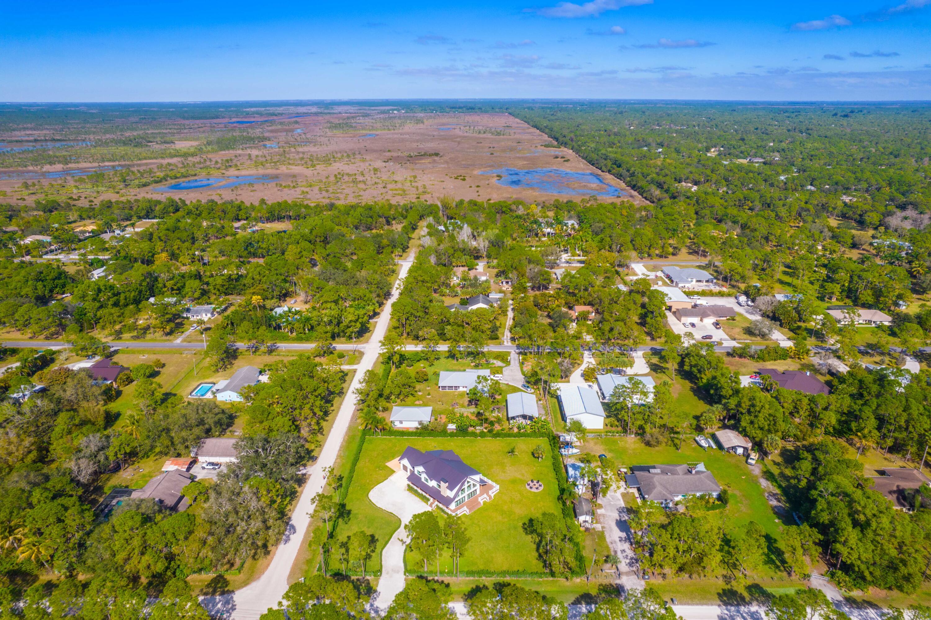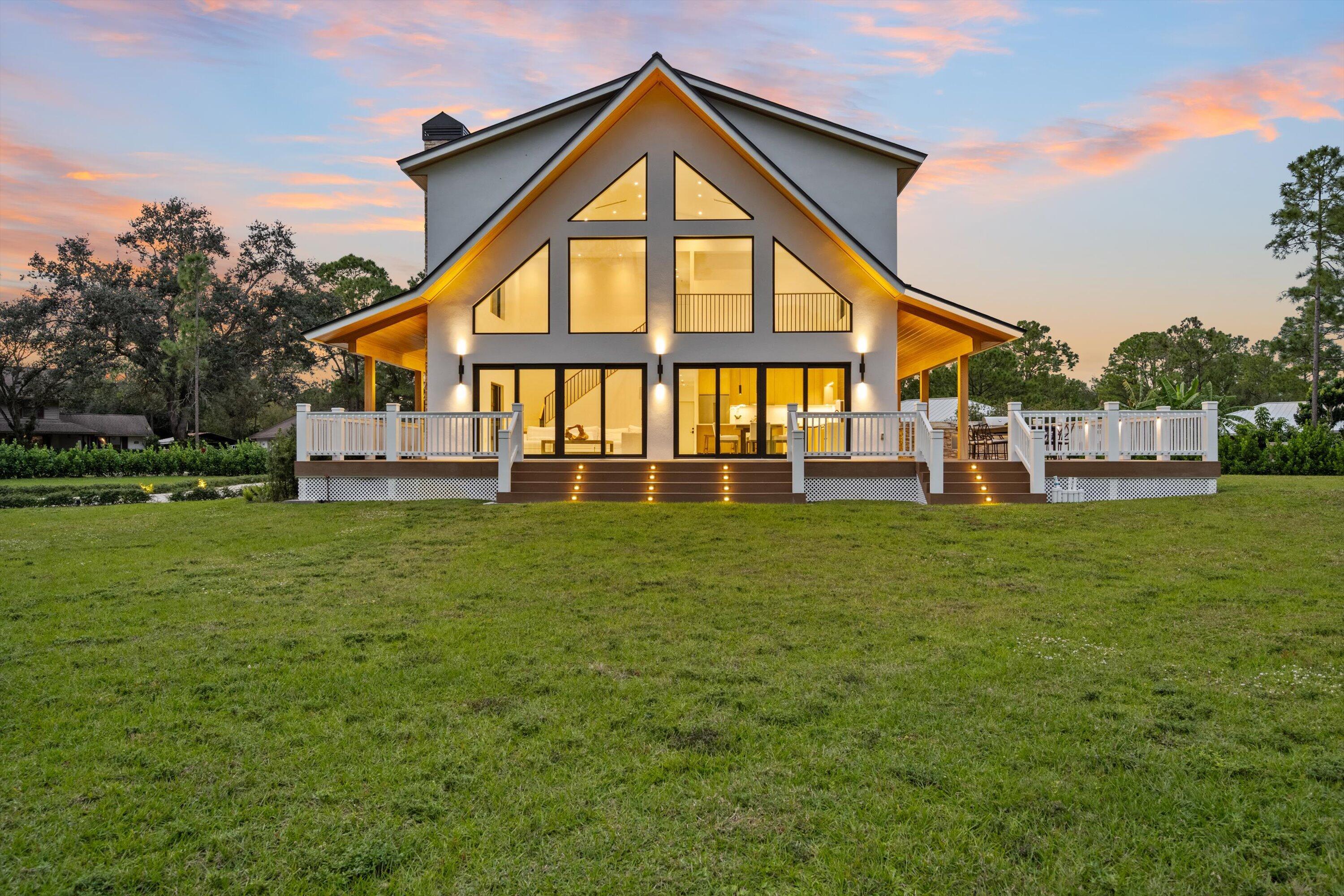 This exceptional new construction estate offers a refined blend of modern luxury andfarmhouse-inspired design in the heart of Jupiter Farms, set on a fully irrigated 1.31-Acre lot with no HOA. Designed by award-winning 'Wandrian Studios' in collaborationwith the owner, this two-story concrete block residence was thoughtfully designed withcustom features that reflect superior craftsmanship and high-quality finishesthroughout. Extending to over 3,600 square feet, the home delivers elevated design,durability, and a seamless indoor-outdoor lifestyle. The interior features five bedrooms, four full bathrooms, and a versatile loft. Monolithic, Bellevue porcelain tile flows throughout the home, creating a sleek and cohesive aesthetic. SEE MORE...The Italian-inspired chef's kitchen is outfitted with premium Bosch appliances and opens to a dramatic living space anchored by a striking two-story A-frame window that floods the home with natural light and creates a strong connection to the outdoors. Designed for both everyday living and entertaining, the home includes smart lighting by 'Lutron Caseta', dual laundry area, and a climate-controlled garage converted into a playroom with a bar, kegerator, and side-by-side refrigerator. Outdoors, an expansive 1,800-square-foot wraparound covered porch with cypress wood accents and a summer kitchen provides the ideal setting for year-round entertaining. The builder offers customization for a future pool and outdoor living area, allowing buyers to tailor the design to their dream vision. Built for longevity and peace of mind, the home features elevated slab construction, hurricane-impact windows and doors, a titanium roof with double wrap trusses, spray-in insulation for energy efficiency, and a 26kW 'Generac' standby generator with 400- amp service and a 1,000-gallon underground propane tank. An additional 18x34 concrete slab offers space for a detached shop or RV, boat, or recreational vehicle parking. Set in one of Palm Beach County's most desirable locations in Jupiter Farms, this property is only 10 minutes from premier shopping, dining, and leading medical facilities, with seamless access to I-95, the Florida Turnpike, and major airports, delivering refined convenience without sacrificing privacy or tranquility.