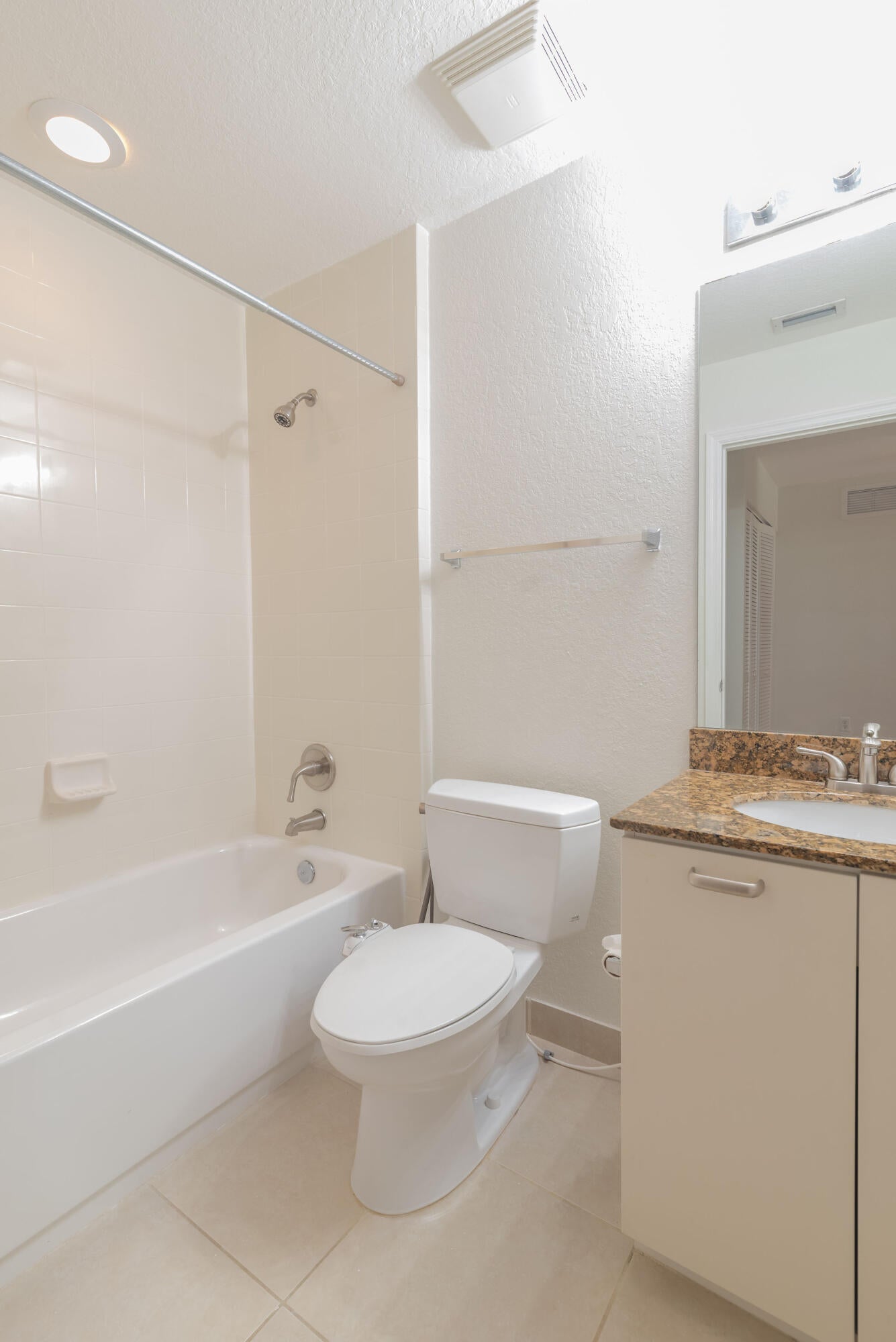 Well-maintained ground-floor 3-bedroom, 2-bath unit featuring a fresh interior with recent paint from top to bottom and new luxury vinyl plank flooring throughout. The functional layout offers comfortable living space with sliding glass door access to a shared yard area with a privacy wall. Spacious bedrooms and convenient ground-level access add to the home's appeal. Clean, move-in ready, and ideally suited for low-maintenance living.
