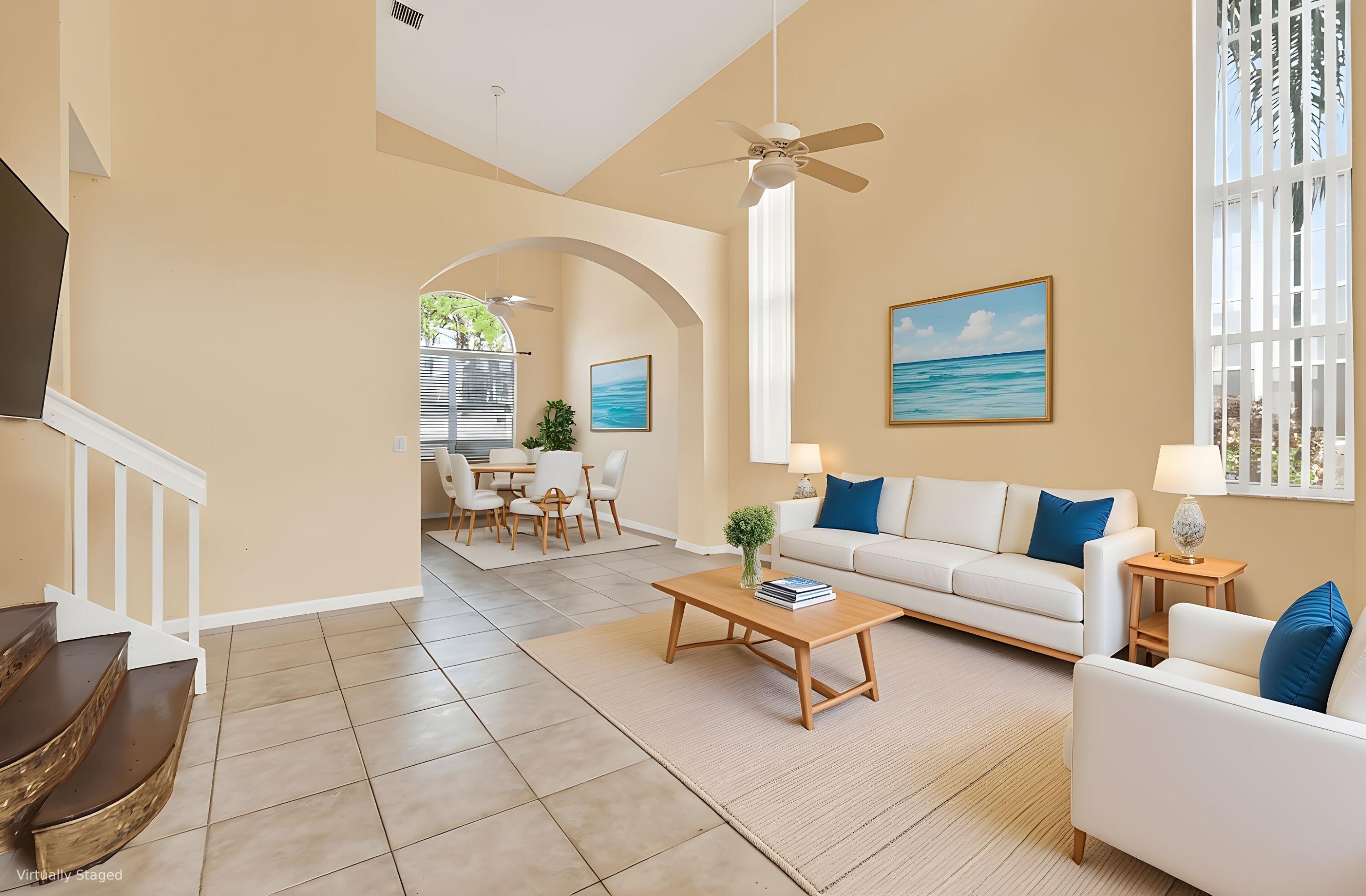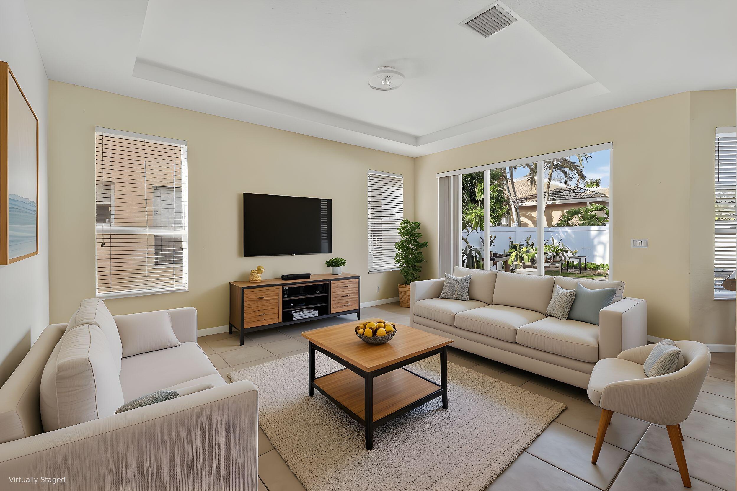 Welcome to this spacious two-story home in the desirable, gated Portofino Shores community. Upon entry, soaring ceilings highlight the formal living & dining areas, creating a bright and open feel. The kitchen opens to the family room with plenty of natural light, making it ideal for everyday living and entertaining.A first-floor bedroom offers flexibility as a guest room, office, or den. Upstairs, the master features double-door entry, a large walk-in closet, and an en-suite bath with dual sinks, separate tub & walk-in shower. Updates include a new roof in 2025 and a private PVC fenced backyard. Amenities include a clubhouse w/resort-style pool, tennis, pickleball, basketball courts & fitness center. Seller will give credit towards repairs/closing costs. Some photos virtually staged.