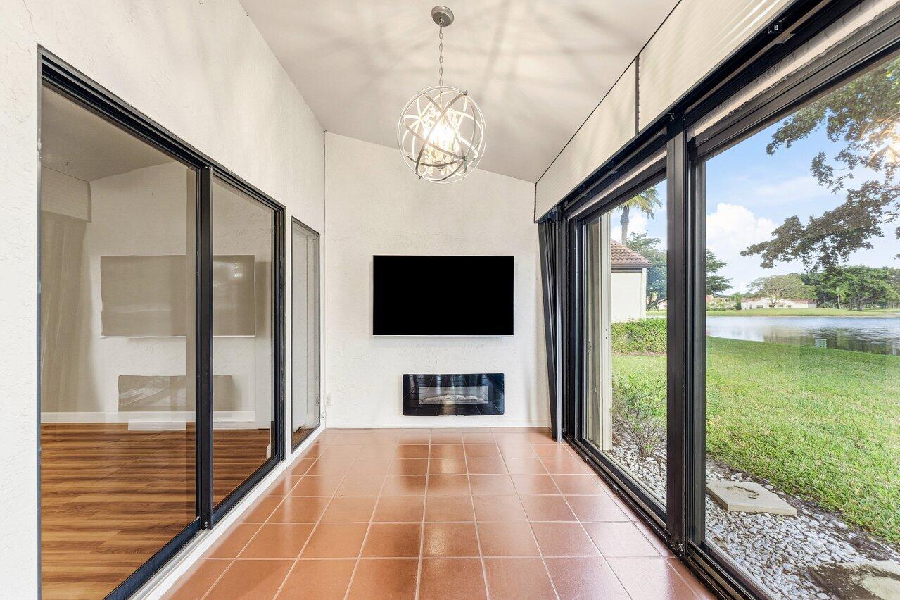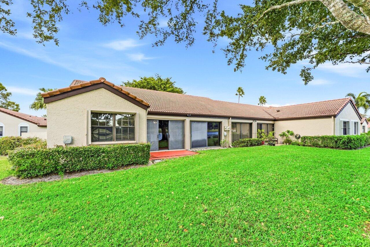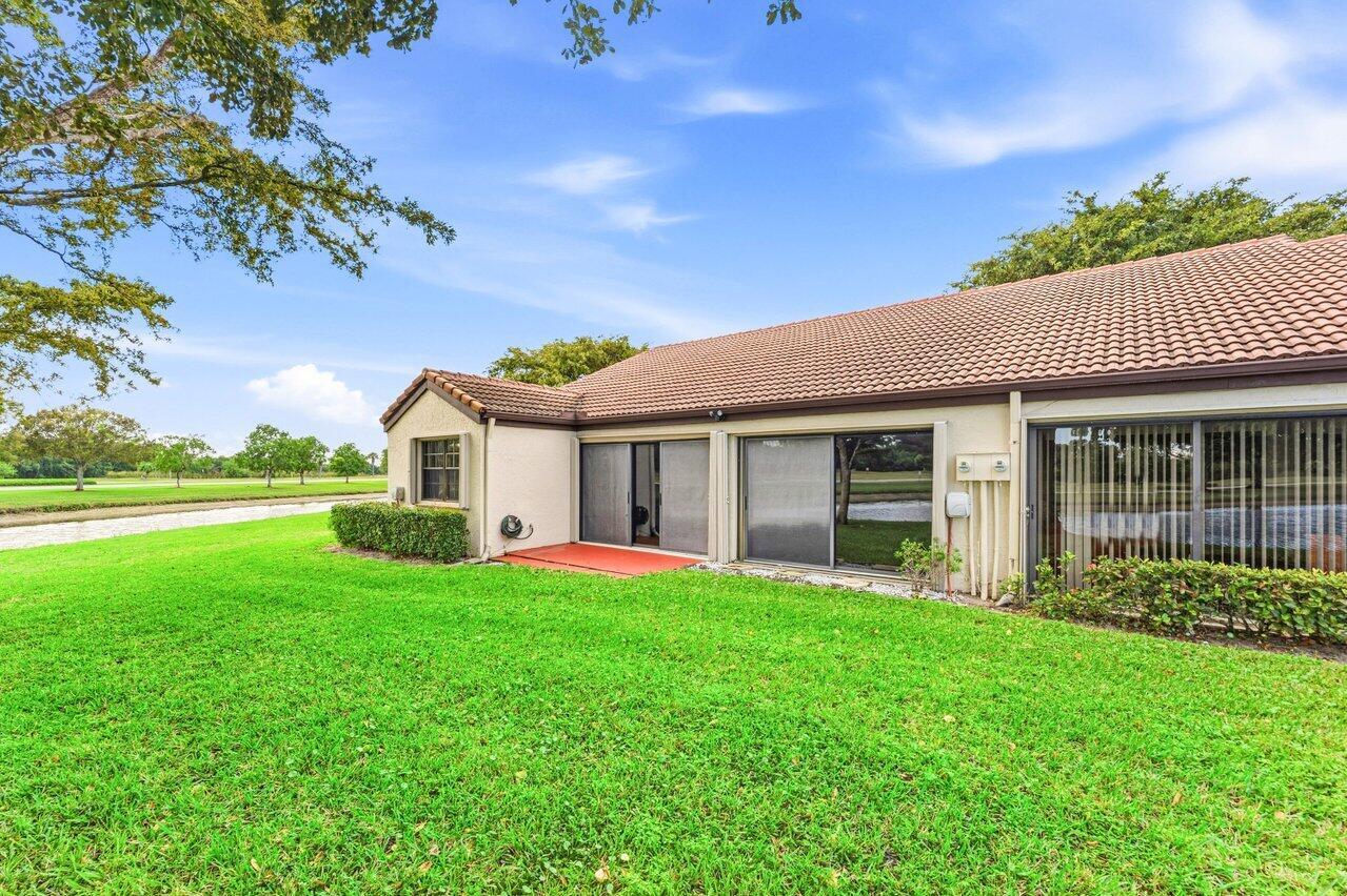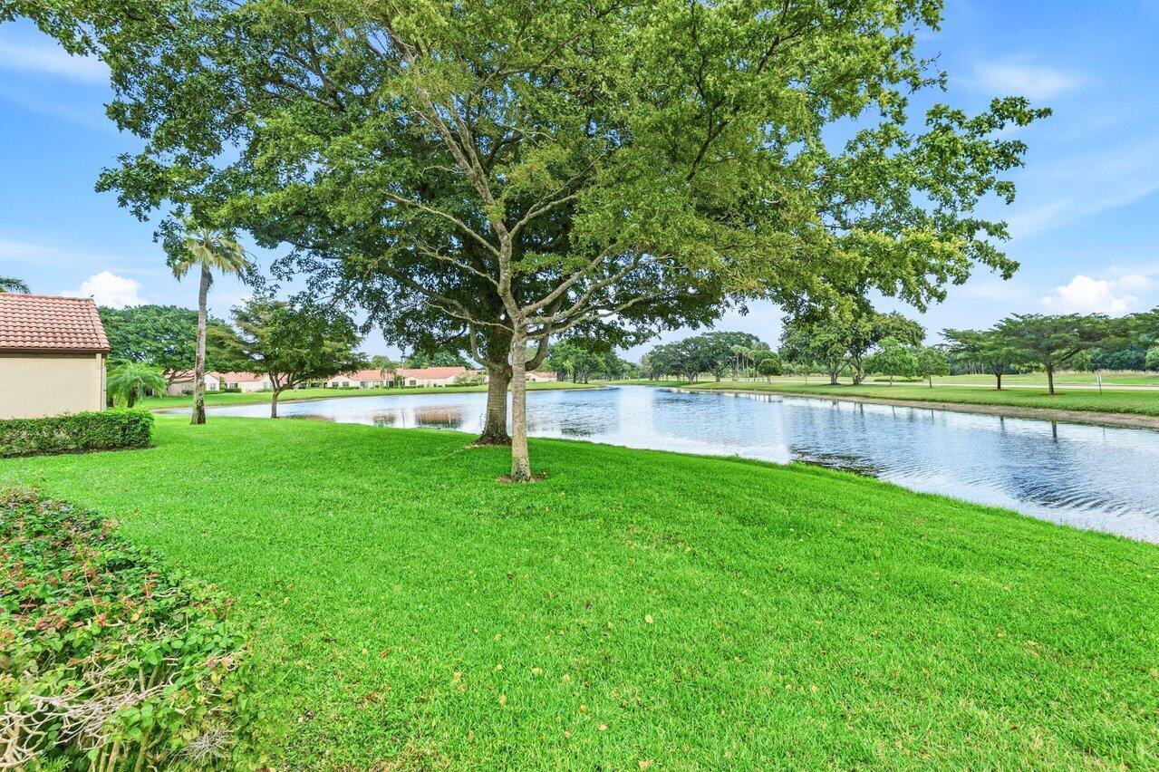 Rarely available end-unit 3-bedroom villa with a spectacular water view, located in the prestigious community of Aberdeen East -- with no mandatory membership fee! Enjoy peaceful mornings or relaxing evenings in your air-conditioned lanai, perfect for coffee or a glass of wine while overlooking the water.This spacious villa is one of the largest models, offering 1,686 sq ft of living space, inclusive of the enclosed lanai. The desirable split floor plan is ideal for entertaining, featuring a separate living room and formal dining area. The home also features an updated kitchen with granite countertops, stainless steel appliances, and custom cabinetry, along with a fully remodeled primary bathroom boasting granite counters, a tiled shower, and custom cabinetry.Additional highlights include built-in closets, vinyl flooring in the bedrooms, plantation shutters, accordion shutters for peace of mind, and a one-car garage with custom cabinetry providing excellent storage. Aberdeen East is a 55+ community offering an active lifestyle with a clubhouse, tennis and pickleball courts, swimming pool, fitness center, card rooms, library, live entertainment, and a wide variety of clubs and activities. Enjoy the country club lifestyle without the country club fees a rare opportunity you don't want to miss! HOA includes Cable & Internet, Landscape, pool, clubhouse, roof and painting of exterior of homes, rear gutters (H/O responsible for front gutters) Maintenance: Roof repair, pest control in the outside, Roadway, sidewalk and structure repair and irrigation.