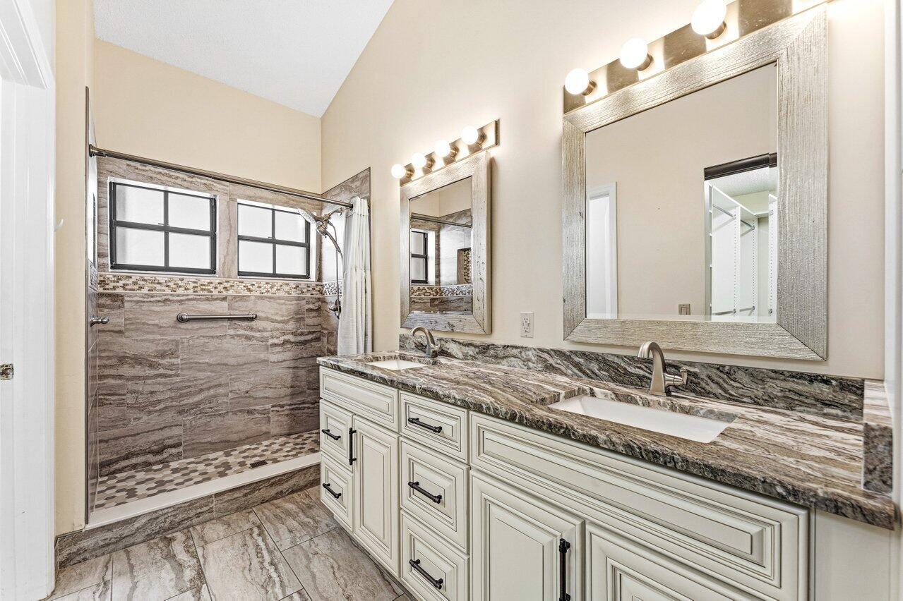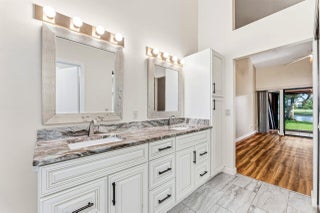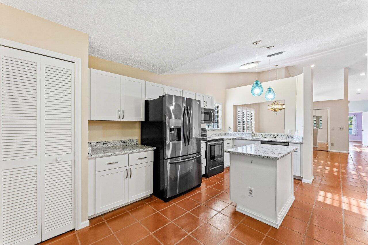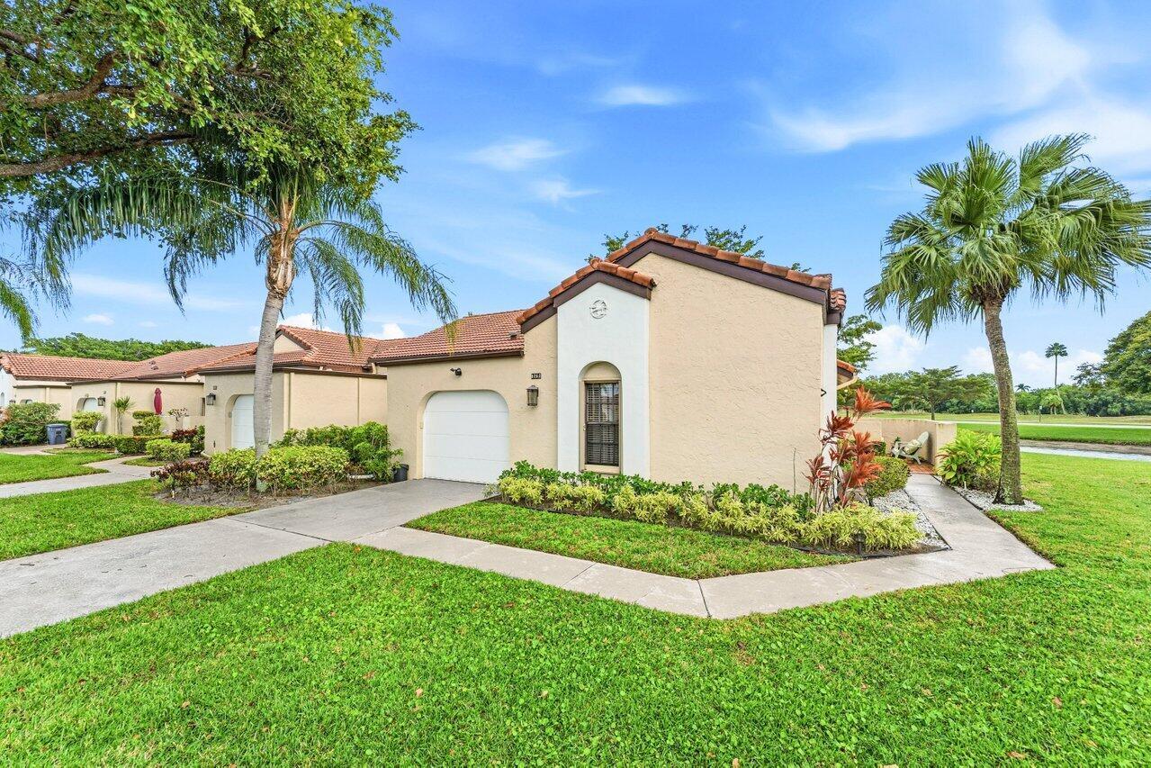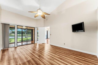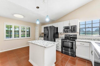 Rarely available end-unit 3-bedroom villa with a spectacular water view, located in the prestigious community of Aberdeen East -- with no mandatory membership fee! Enjoy peaceful mornings or relaxing evenings in your air-conditioned lanai, perfect for coffee or a glass of wine while overlooking the water.This spacious villa is one of the largest models, offering 1,686 sq ft of living space, inclusive of the enclosed lanai. The desirable split floor plan is ideal for entertaining, featuring a separate living room and formal dining area. The home also features an updated kitchen with granite countertops, stainless steel appliances, and custom cabinetry, along with a fully remodeled primary bathroom boasting granite counters, a tiled shower, and custom cabinetry.Additional highlights include built-in closets, vinyl flooring in the bedrooms, plantation shutters, accordion shutters for peace of mind, and a one-car garage with custom cabinetry providing excellent storage. Aberdeen East is a 55+ community offering an active lifestyle with a clubhouse, tennis and pickleball courts, swimming pool, fitness center, card rooms, library, live entertainment, and a wide variety of clubs and activities. Enjoy the country club lifestyle without the country club fees a rare opportunity you don't want to miss! HOA includes Cable & Internet, Landscape, pool, clubhouse, roof and painting of exterior of homes, rear gutters (H/O responsible for front gutters) Maintenance: Roof repair, pest control in the outside, Roadway, sidewalk and structure repair and irrigation.