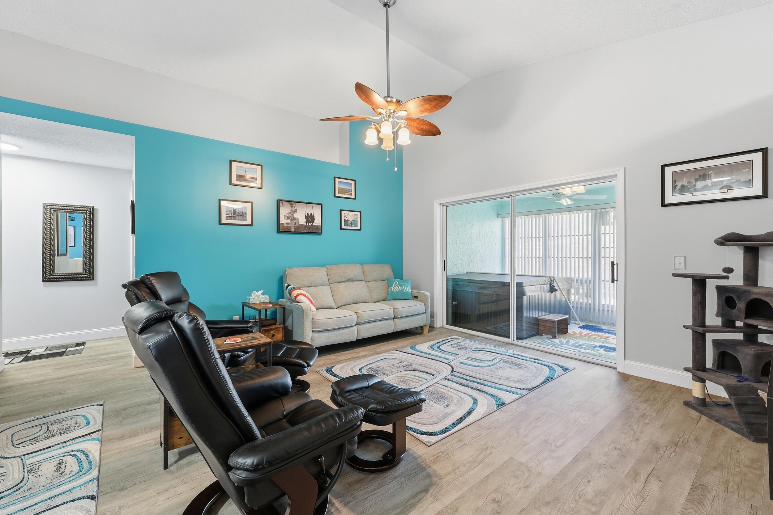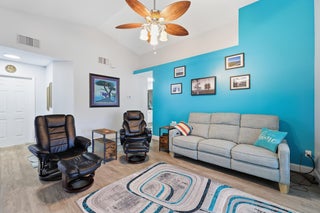 OPEN HOUSE 2/8 (12-4) BONUS** NO LOT RENT YOU OWN YOUR LAND and LOW COUNTY ONLY TAXES! Beautifully Updated Single Family Concrete Home with extended driveway for 2-3 cars plus 1 car garage, open living area with vaulted ceilings, beautiful chefs kitchen with tons of upgrades and new appliances, office/den off kitchen, PLUS 2 spacious bedrooms, 2 remodeled bathrooms, enclosed private patio, all in a gated community with resort style amenities! This very active 55+ community has a low HOA covering everything you need: 24/7 manned gate security, luxurious clubhouse, heated pool, exercise room, tennis courts, pickleball, bocce ball, shuffleboard, and a variety of social clubs and events. HOA also includes Water, Sewer, Cable, Internet & Lawn. MOVE IN READY! (washer and dryer not included)