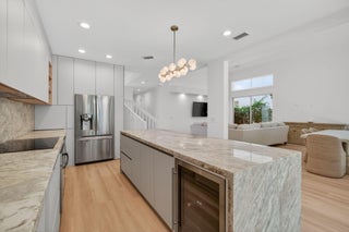Welcome to this stunning 3-bedroom, 3.5-bathroom remodeled home located on a quiet cul-de-sac in the highly sought-after Village of Laurel Pointe within Broken Sound Country Club. Spanning 2,367 square feet, this bright and spacious residence features soaring vaulted ceilings, a thoughtfully designed layout, and designer finishes throughout. The luxurious primary suite is conveniently located on the main level and offers a walk-in closet, a spa-like bathroom with a freestanding soaking tub, and a frameless glass shower. Upstairs, you'll find two generously sized guest bedrooms, each with its own en-suite bathroom, providing privacy and comfort for family or visitors.The gourmet kitchen is a chef's dream, highlighted by a large waterfall center island with built-in beverage cooler, sleek cabinetry, and stainless appliances - ideal for entertaining. The open-concept living and dining areas are filled with natural light and flow seamlessly to the private, fenced-in backyard complete with low-maintenance AstroTurf - perfect for pets or outdoor enjoyment. Enjoy the exclusive lifestyle and resort-style amenities of Broken Sound Country Club, including golf, tennis, dining, spa, and fitness center. Don't miss this exceptional opportunity to own a turnkey home in one of Boca Raton's premier communities.