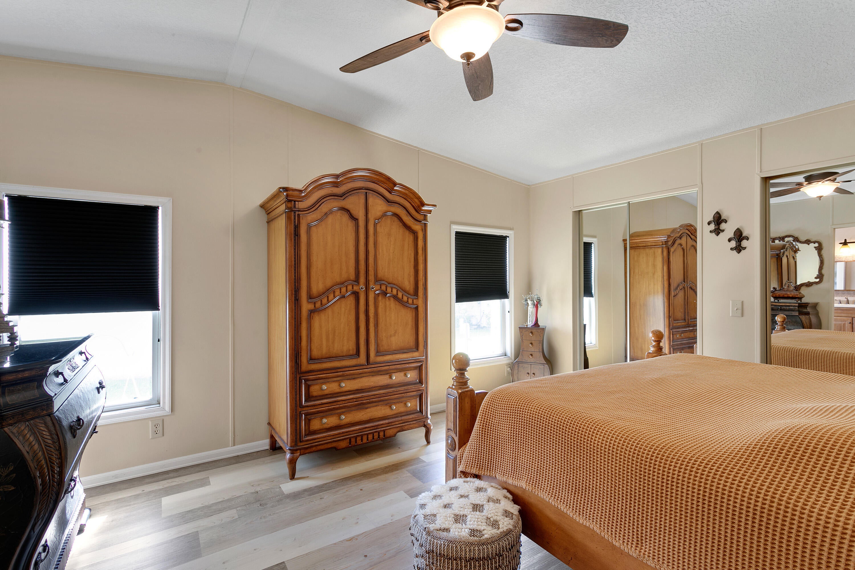 MOTIVATED SELLER -- don't miss this true gem of a home! This meticulously maintained 2-bedroom, 2-bath property offers the rare advantage of no land lease. The spacious 24 x 45 home features a double roof and durable vinyl lap siding. The remodeled kitchen boasts white wood cabinets, granite countertops, tile flooring, and a glass tile backsplash. Bamboo flooring enhances the living room and guest bedroom, while the primary bedroom has new vinyl flooring. The updated main bath includes a tiled step shower with glass door, dual sinks, wood vanity, decorative mirror, and modern lighting. Additional highlights include vaulted ceilings, updated windows, drywall interior walls, ceiling AC vents, two sheds, and an indoor washer and dryer. You'll love spending time in the Florida room, offeringextra living space with tile flooring, plexiglass windows, and a stylish accent wall. Jamaica Bay is a Manned Gated Community with plenty of activities. Active Clubhouse with Heated Pools, Pickleball Courts, Yoga, Karaoke, Bingo, Cards, Billiards, Shuffleboard and much more. Be ready to enjoy an active adult lifestyle at Jamaica Bay. Community is close to plenty of shopping, dining and beaches.