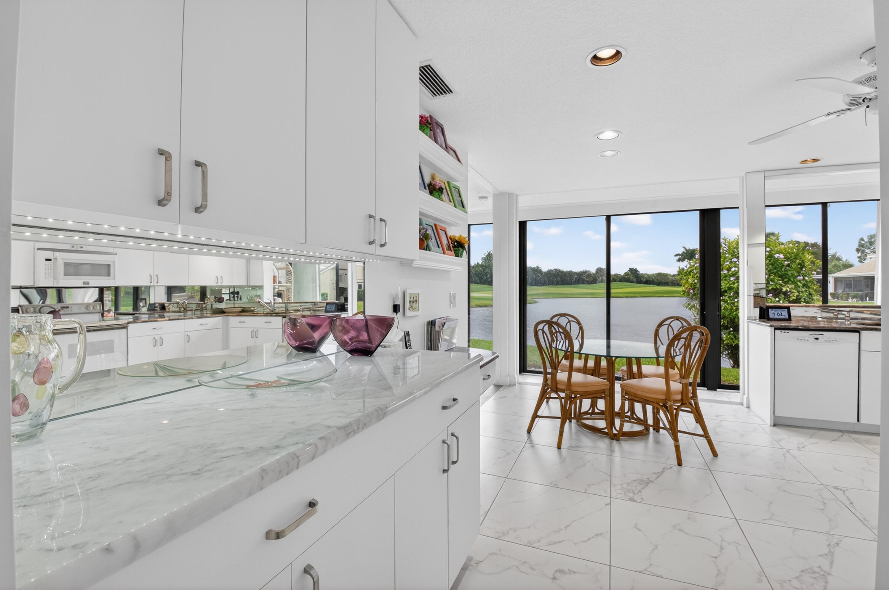 Enjoy spectacular lake and golf course views with a coveted Southeast exposure overlooking the Palmer III golf course at Boca West Country Club. This rarely available and expanded 3 BR, 3 BTH villa is light, bright and filled with sunshine throughout the day. Thoughtfully updated, the home features 24 x 24 porcelain tile flooring throughout, newer AC and hot water heater, partial impact windows, and accordion shutters for peace of mind. All closets are outfitted. An extra long driveway provides ample parking, perfect for guests and everyday convenience. With breathtaking views, abundant natural light, this villa offers the ideal blend of comfort and enjoyment. Mandatory Joining Fee: $150,000, BWMA Capital Contribution: $10,000, Annual Social Dues: $24,454.