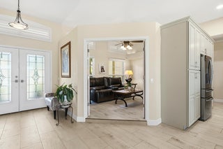 Significant $25,000 Price Improvement. Extensively updated and truly move-in ready, this lakefront pool home has high ceilings and abundant natural light, a renovated kitchen, modern bathrooms, and designer wood-look plank flooring throughout. A flexible bonus space easily functions as a home office, den, or media room, etc. Outdoors, the expansive covered lanai with pool and spa overlooks wide lake views and spectacular sunsets delivering the Florida lifestyle. Located within a gated, tree-lined golf club community close to shopping and dining, this home offers updates, setting, and value in one complete package.