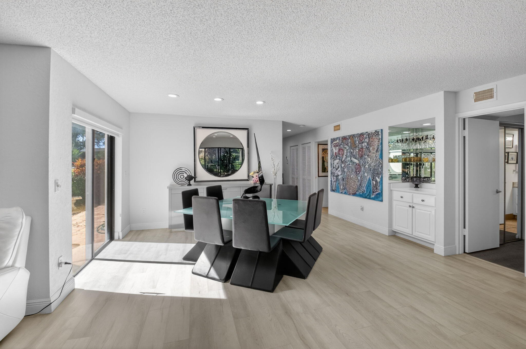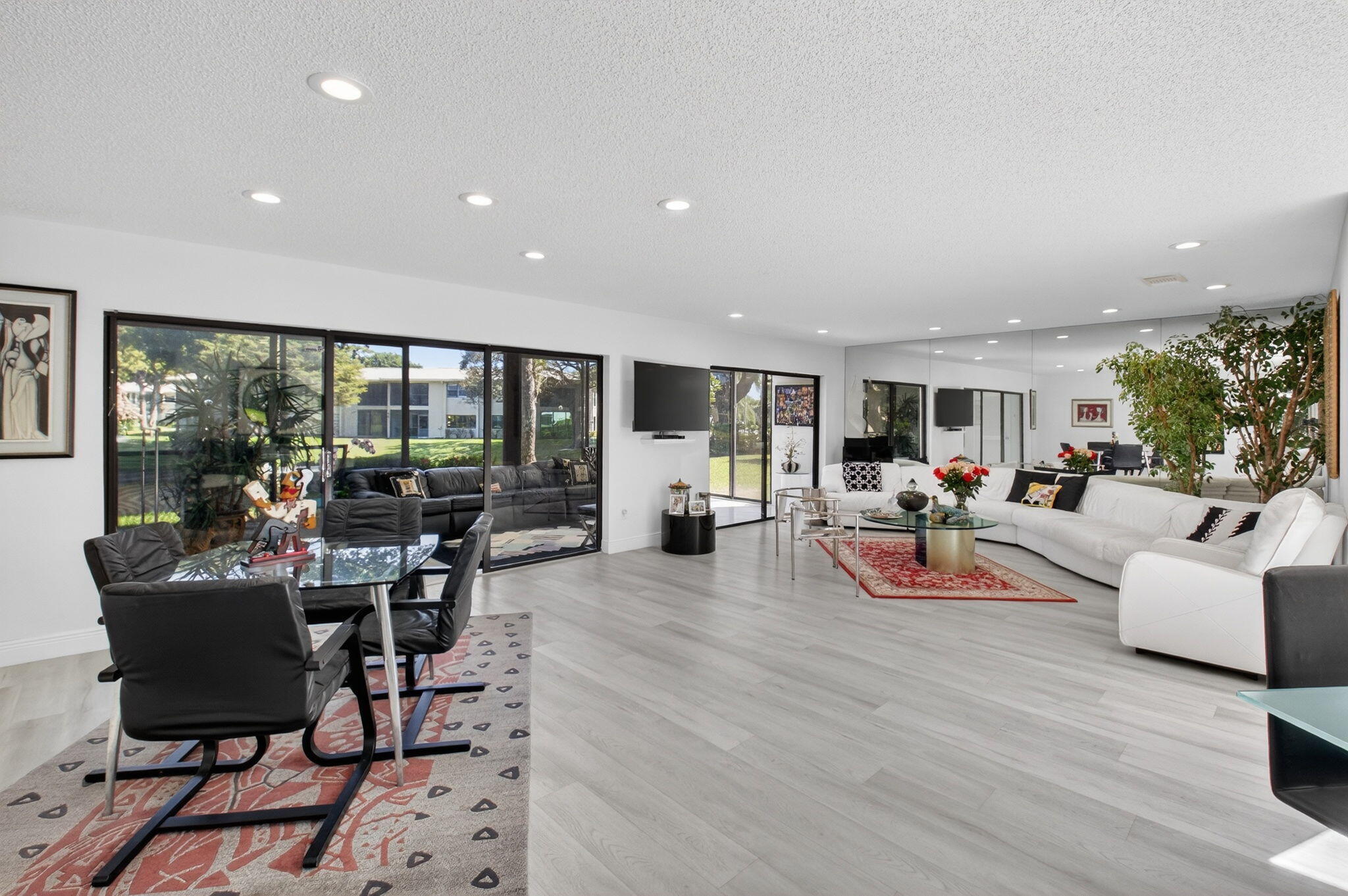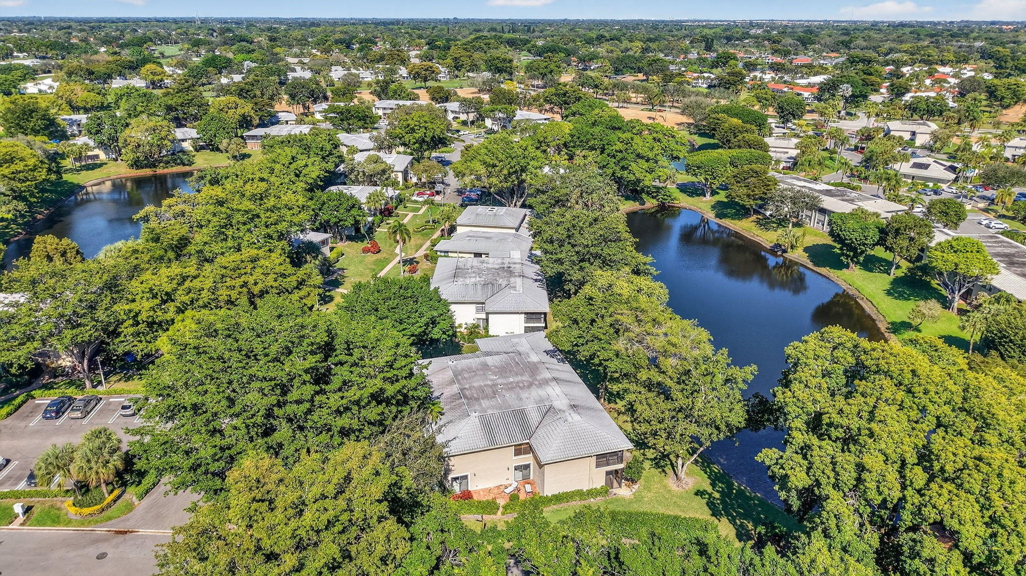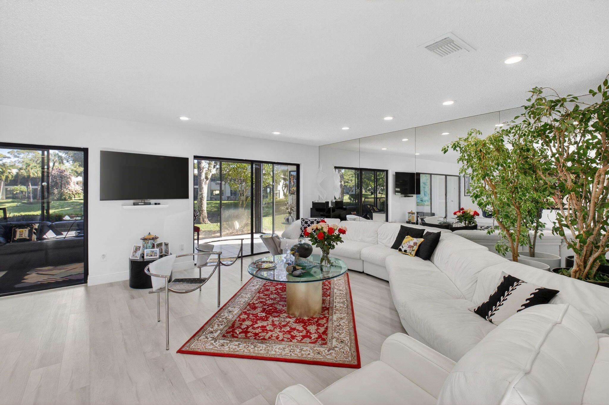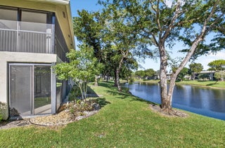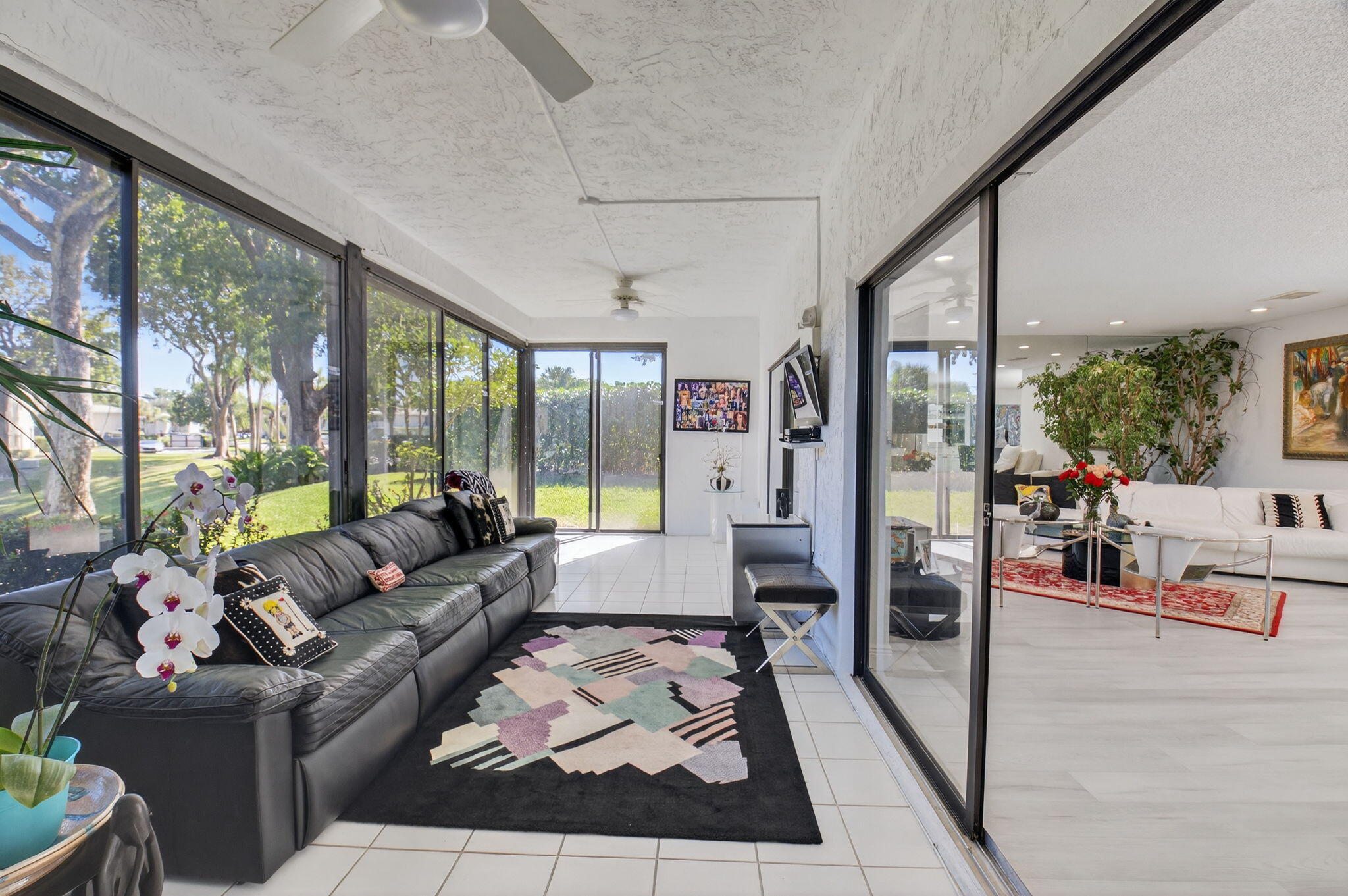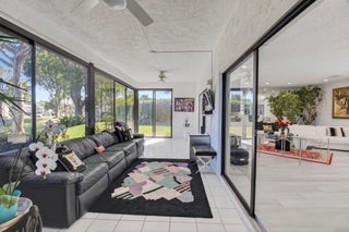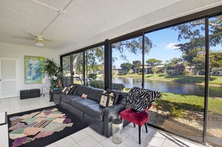 Welcome to this spacious and beautifully located first-floor residence in the highly desirable Westgate community of Hunters Run Country Club. This two bedroom + Convertible 3rd Bedroom/Den, two-bath condo offers over 2,000 square feet of living space with a bright, open layout and desirable southwest exposure. Enjoy tranquil water views and seamless indoor-outdoor living from the Glass Enclosed Florida Room, perfect for relaxing or entertaining. The home features a generous living and dining area, ample storage, and a functional floor plan with all bedrooms on the main level. Glass Sliders In Dining Area & Kitchen lead out to the Open Patio.. perfect for Alfresco Dining and Golf Cart Parking.