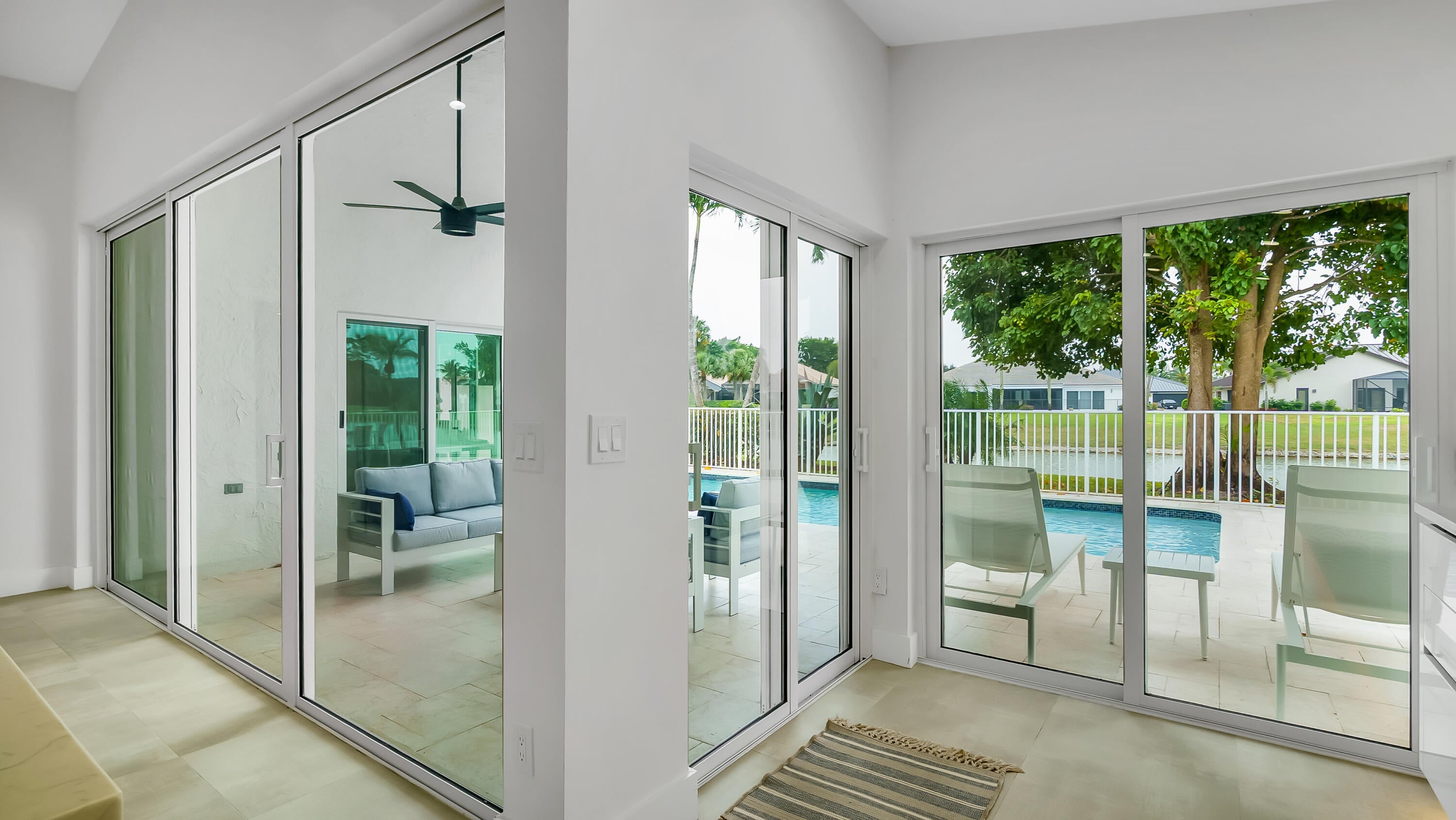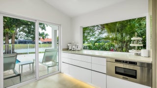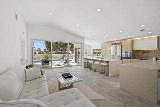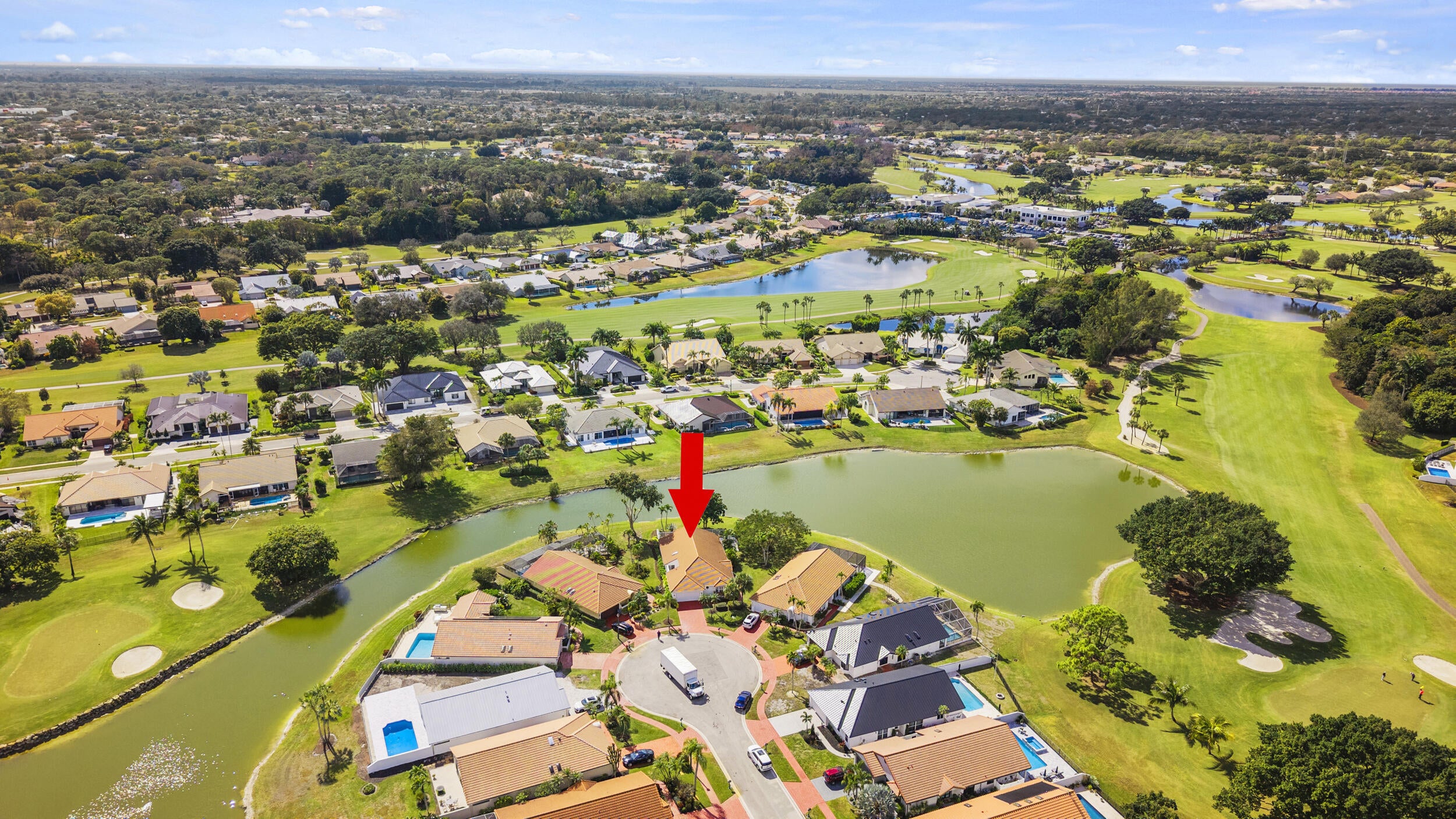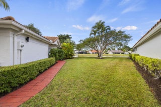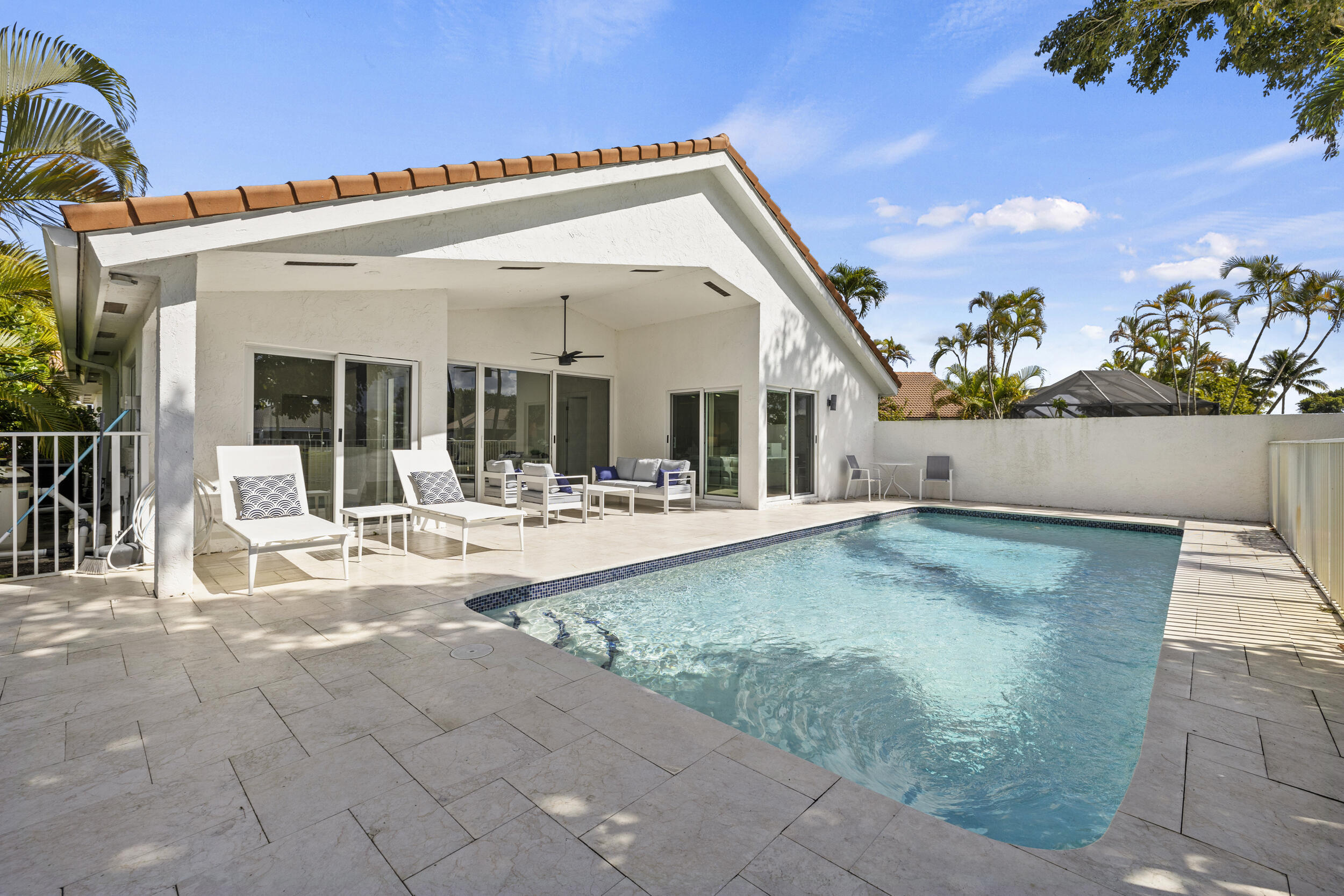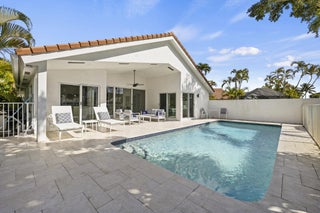 A true piece of paradise in Boca Woods Country Club. This fully renovated home features a light and bright open floor plan with thoughtful design throughout. The chef-inspired kitchen offers European cabinetry, quartz countertops, and high-end stainless steel appliances framed with beautiful lake and golf course views. The primary bedroom has a spa like bathroom and custom cabinets in the walk-in closets. 2 secondary spacious ensuite bedrooms. Enjoy a unique private atrium with a custom waterfall and spa hot tub. Outdoors, relax on the extended marble deck with a saltwater pool and stunning lake and sunset views. Located at a pie shaped lot on one of the best cul-de-sacs in the community, offering the exceptional Boca Woods golf and country club lifestyle. Step inside and fall in love!