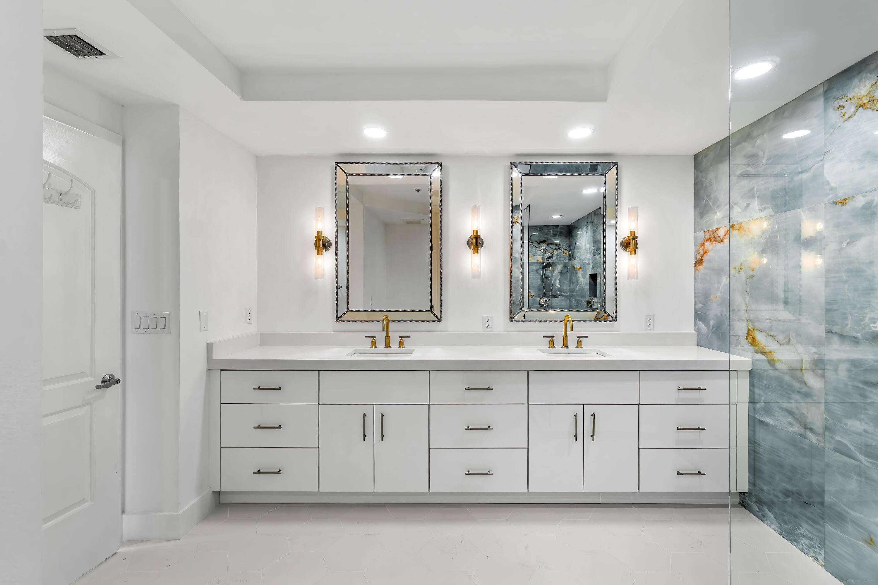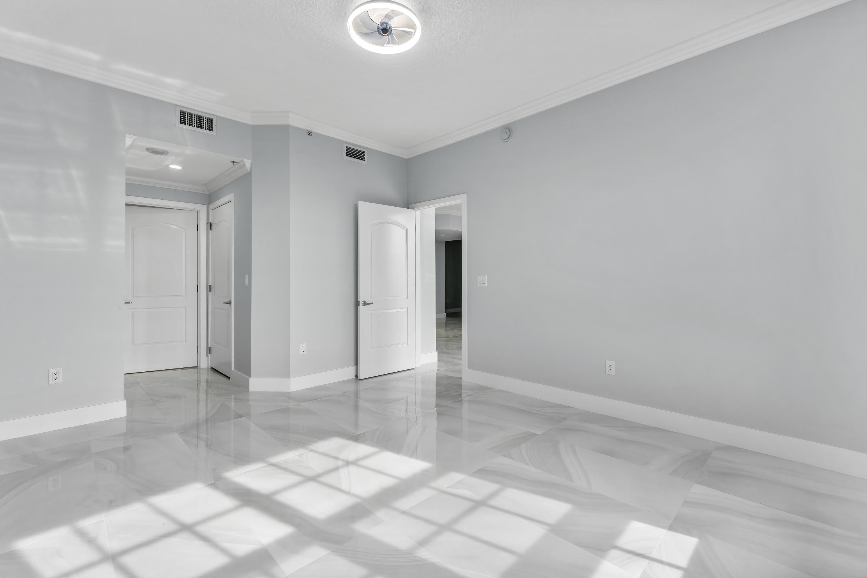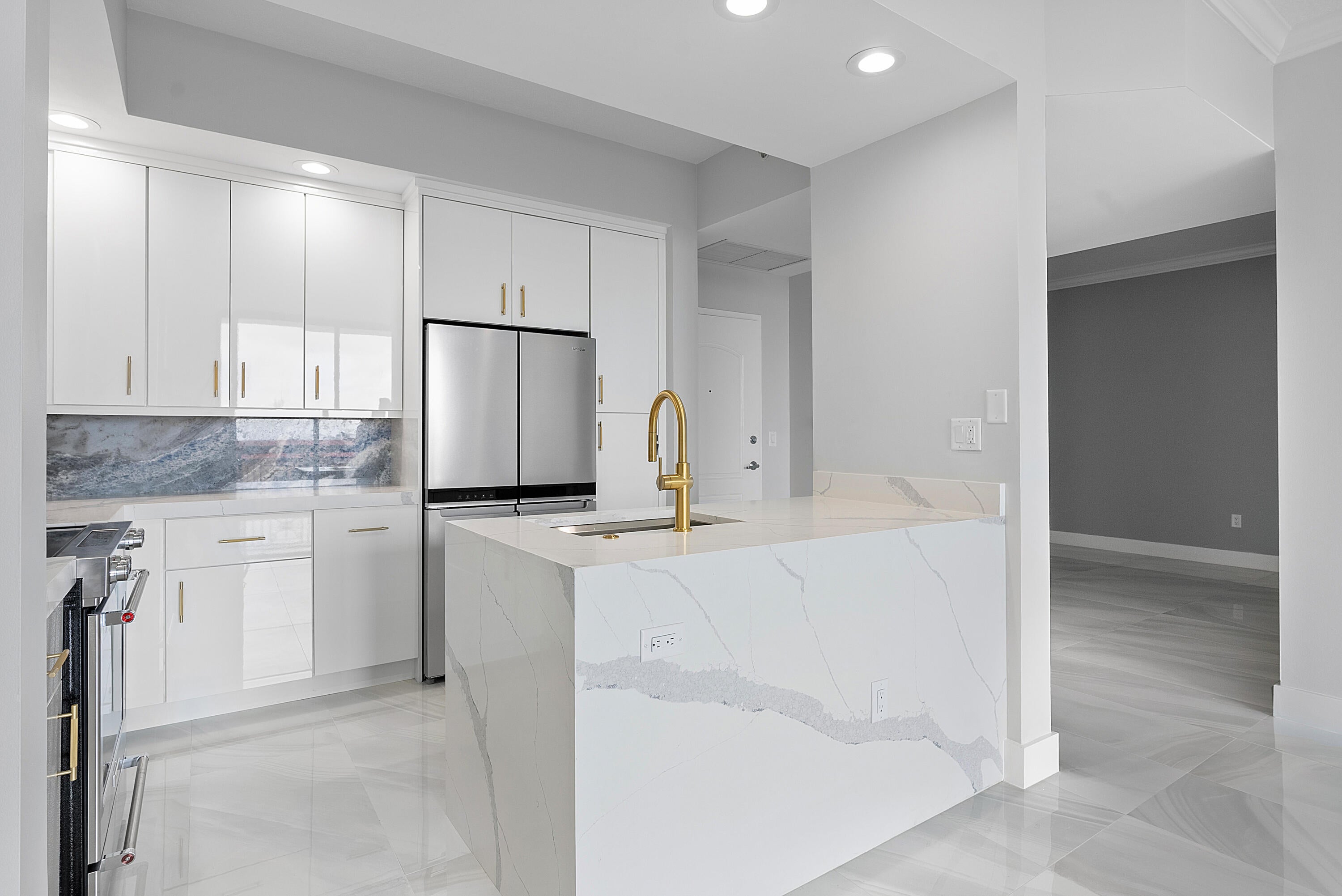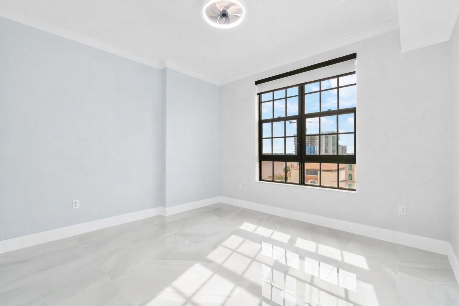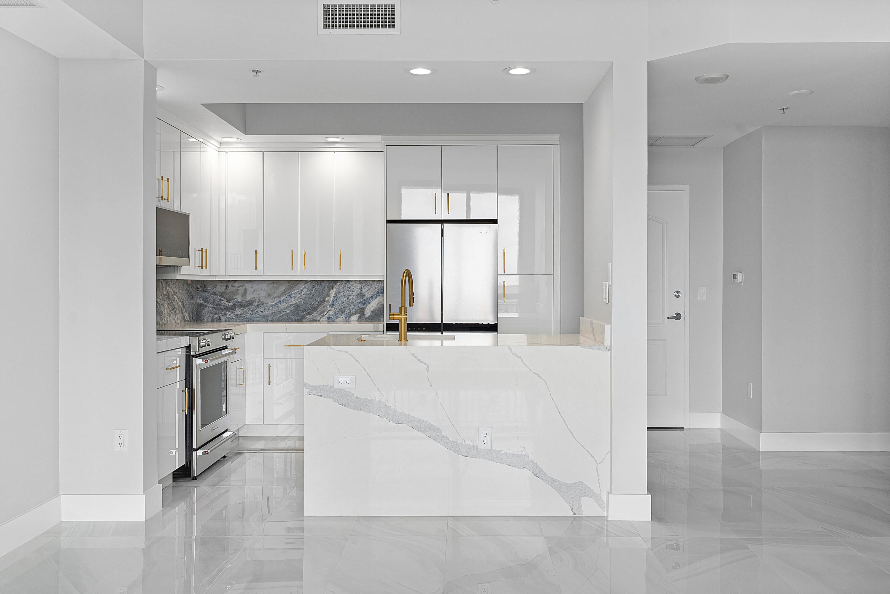 Welcome to a truly exceptional residence that will take your breath away from the moment you step inside. This magnificent home in the sky offers panoramic southeast views of the intracoastal and ocean while also boasting a stunning city sunset skyline. All framed with soaring 10' ceilings and floor to ceiling sliders to seamlessly connect the living and dining /kitchen spaces with the awe-inspiring surroundings. Featuring 2-bedroom, 2 fully renovated bathrooms plus den/ flex 3rd room. The newly remodeled kitchen is stunning, highlighting custom cabinetry, counters, backsplash and all new appliances. The flexibility of this residence is evident with a bonus 3rd room that can serve as a den, sitting/TV, or a third flex room. The spacious master suite is a sanctuary in itself, featuring..a luxurious designer spa-like bathroom with a generous customized shower, all new cabinetry, counters and fixtures. It boasts an oversized fitted walk-in closet. The second bedroom, which also benefits from stunning intracoastal views, comes with a fully renovated incredible bathroom. Beautiful new flooring runs throughout the entire residence, adding a touch of luxury to every step. With 24-hour security, a dedicated concierge, complimentary valet parking, and an exceptional staff. And when it's time to venture out, you're just across from One Flagler, minutes away from the convenience of PBI Airport, the elegance of Palm Beach Island, the vibrant atmosphere of The Square, and much more. This is more than a residence; it's a lifestyle where every day is filled with unparalleled beauty and comfort.