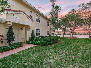 Stunning fully FURNISHED 3BR/2BA lakefront Coach Home located in the gated 55+ Baywinds community in West Palm Beach. This spacious residence offers a bright, open layout with lake views from multiple rooms, a private elevator, impact glass throughout, and approx. 2,400 sq ft of living space. Interior features include upgraded appliances, quartz countertops, wood staircase, and a renovated primary bathroom finished with porcelain and quartz. Baywinds offers an active adult lifestyle with a staffed clubhouse, community pool, lighted tennis and pickleball courts, bocce, sauna, fitness rooms, and social activities. Located near shopping, dining, downtown West Palm Beach, and PBIA. Rent includes wifi, phone, premium cable, ADT monitoring, water/sewer, lawn care, roof and exterior maintenance