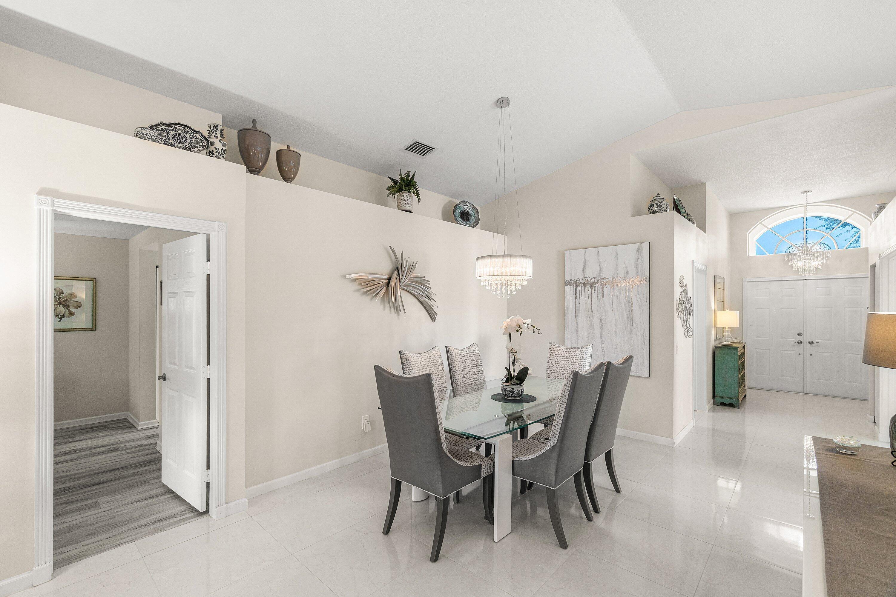 Welcome to easy living in this beautifully maintained 3 bed, 2 bath home in the active adult community, Valencia Lakes. Move-in ready with upgraded kitchen featuring eat-in breakfast nook, ample cabinetry and counter space, as well as updated lighting and appliances. The primary suite offers his/hers closets and renovated en-suite bath with freestanding tub. A split bedroom layout provides privacy for guests, and flexibility for a den/office, while living and dining areas create a bright, welcoming flow throughout the home. Enjoy a low-maintenance lifestyle relaxing on the screened-in patio with lake view. Valencia Lakes offers resort-style amenities incl clubhouse, pools, fitness center, tennis, pickleball, and full social calendar. All located near shopping, dining, and major roadways.