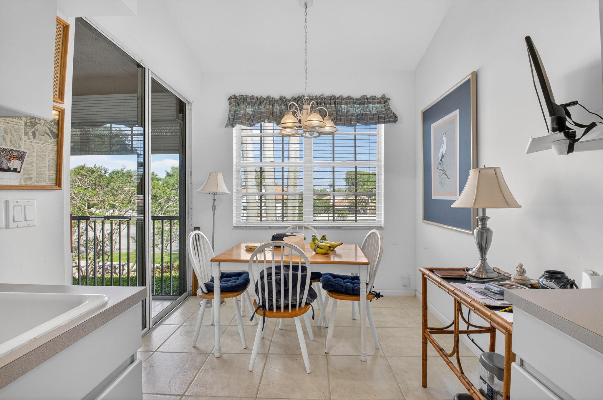 Second-floor condo located in the desirable Villa Sonrisa community at Boca Pointe. This spacious and versatile floor plan features 3 bedrooms plus a den, perfect for a home office, guest space, or possible 4th bedroom. The generous living and dining areas provide a comfortable setting for everyday living and entertaining. Sliding doors lead to a screened-in patio with tranquil garden views, complete with convenient pull-down storm shutters. The eat-in kitchen offers ample cabinet and counter space and room for casual dining. A/C and water heater were replaced in 2018. Driveway parking includes a one-car garage, with additional guest parking close by. Enjoy access to the community pool and the Boca Pointe lifestyle.