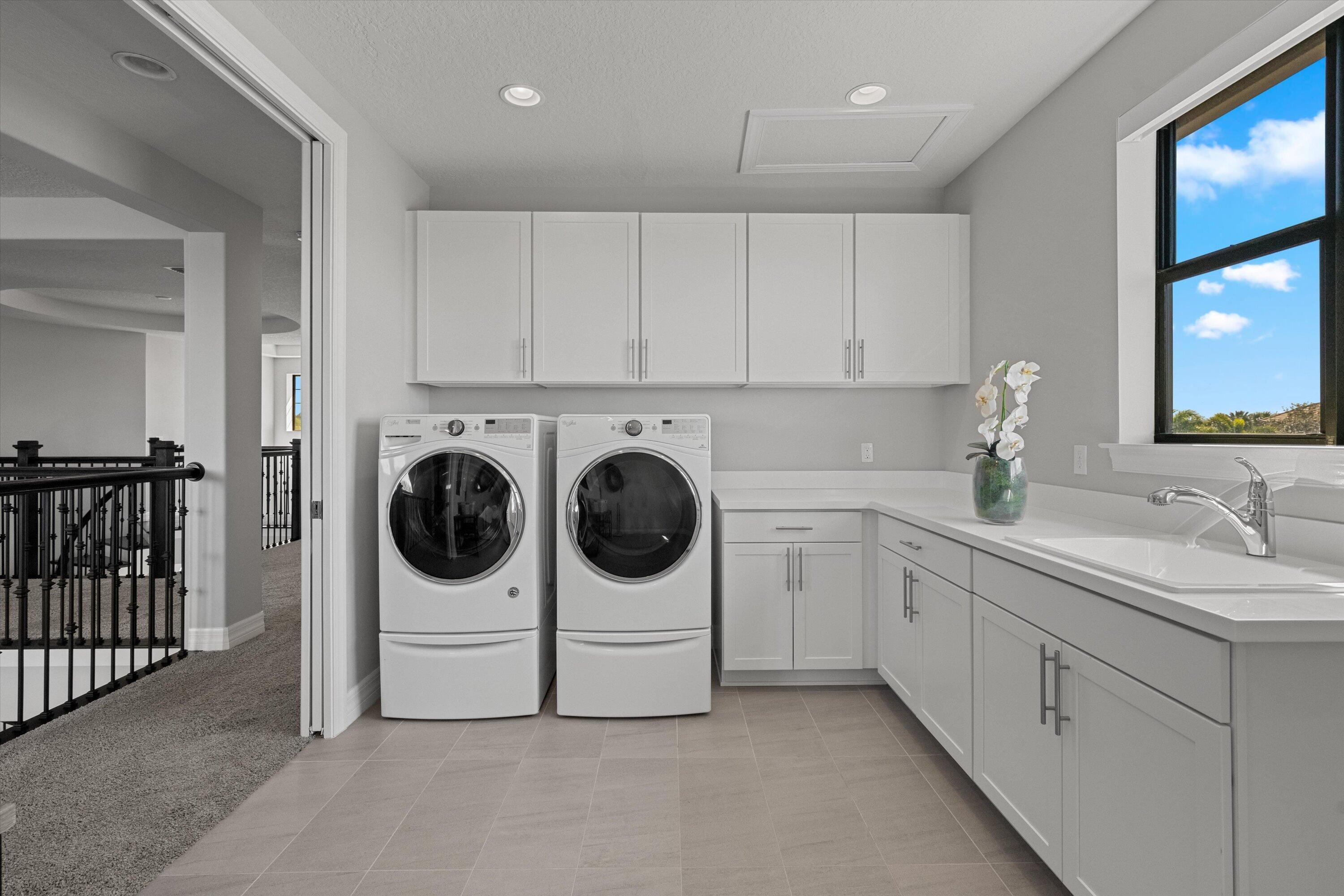 Welcome to this move-in-ready designer residence in the heart of Jupiter's premier gated, family-friendly community of Sonoma Isles. Truly one of a kind, this exceptional home is one of only three of this particular model ever built--so distinctive that the builder ultimately discontinued it due to cost, making it a rare opportunity for the discerning buyer.From the moment you arrive, the custom Bolivian Mahogany front doors set the tone for the craftsmanship and luxury found throughout. Inside, a soaring two-story foyer and walls of natural light welcome you into an open-concept living space enhanced by high-end designer finishes at every turn. This premium oversized lot is just steps from clubhouse amenities-- the SouthEast, NorthWest orientation provides natural lightfrom morning to evening. This lightly lived-in home features a chef's kitchen designed to impress, complete with solid wood cabinetry, glass uppers, quartz countertops, and top-of-the-line built-in Jenn Air appliances. The first floor offers effortless, elegant living with a den/office, formal dining room, breakfast area, expansive family room with dramatic two-story ceilings, and a generously sized primary suite. A graceful winding staircase leads to three additional spacious bedrooms and a large media room which can easily serve as a fifth bedroom if desired. Outdoor living is equally exceptional. The lush backyard overlooks the lake's "sweet spot", offering breathtaking sunset and expansive lake views. The design and plans for a custom pool are already in place, or you may choose to create your own personalized outdoor oasis. Additional features include a whole-house water purifier and softener with drinking water station, as well as a whole-house built-in vacuum system. The home may also be offered completely furnished. This is a rare opportunity to own a truly unique home in one of Jupiter's most sought-after communities. Schedule your private showing todayhomes like this don't last.