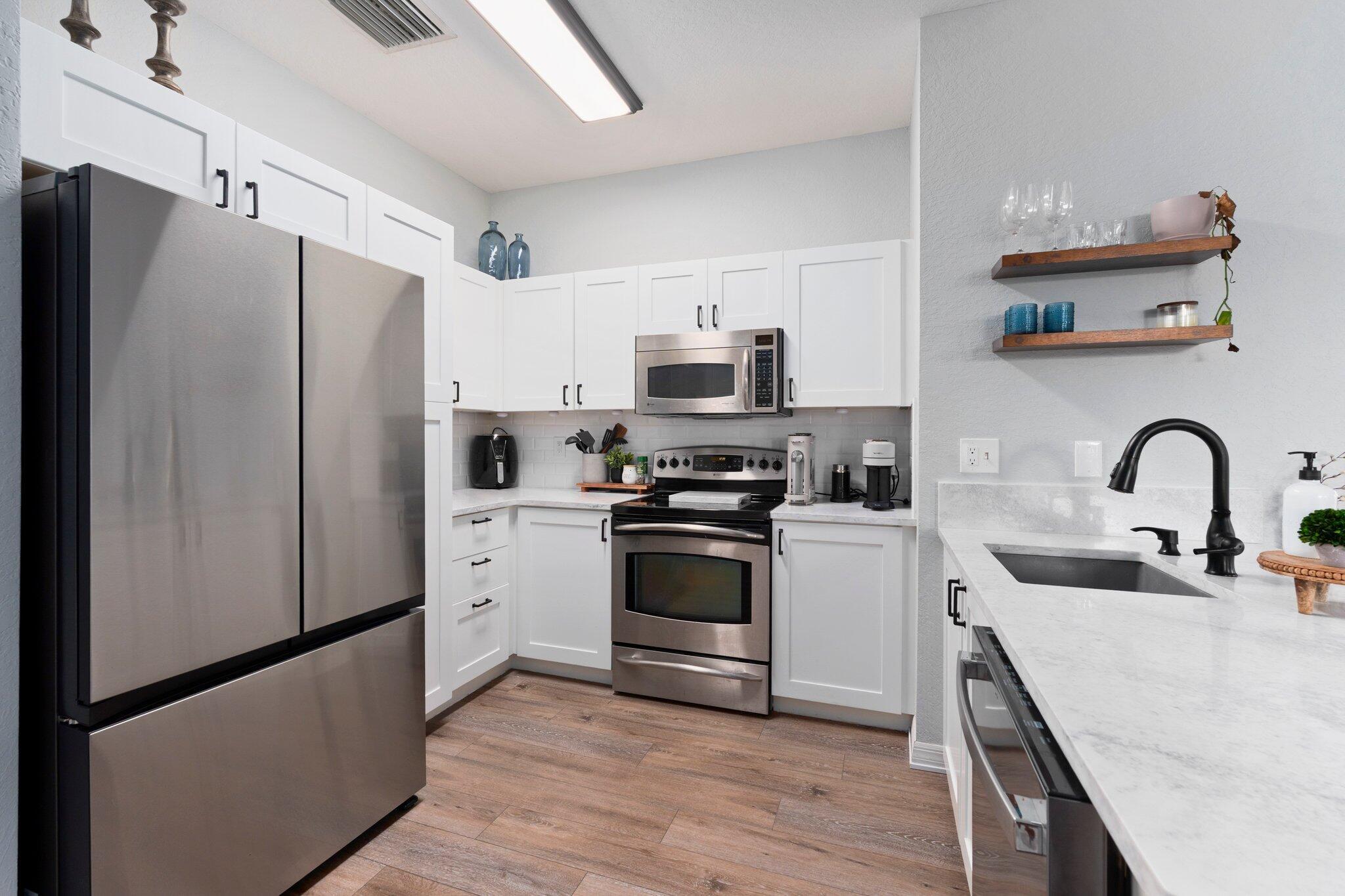 Location, Location! Discover this Stunning, Beautifully Remodeled 3 Bedroom, 2 Bathroom, 1 Car Garage Condo, located in the desirable Vilabella, situated in the heart of Stuart! Step inside this Immaculate, Beautifully Remodeled Corner-End Unit featuring New Luxury Vinyl Flooring throughout, New Quartz CT with Tile Backsplash, S/S Appliances, New Fans/Light Fixtures, Impact Windows and Doors, providing you peace of mind, energy efficiency and storm protection and so much more! This Home has Natural Light beaming from every angle with an Open, Light and Inviting functional Floor Plan, and a Covered Balcony overlooking a peaceful Waterview!Also, tucked away in a Prime Location within the Community and just minutes to Historic Downtown Stuart, with endless Shops, Waterfront Dining, Entertainment, and Riverwalk! Vilabella is an all-age Gated Community with a Clubhouse and Pool, offering well-maintained surroundings with Mature Landscaping and grounds to ensure a clean and peaceful Living, for all Residents! Paradise Awaits, don't miss your opportunity on this stunning Move in Ready Home!