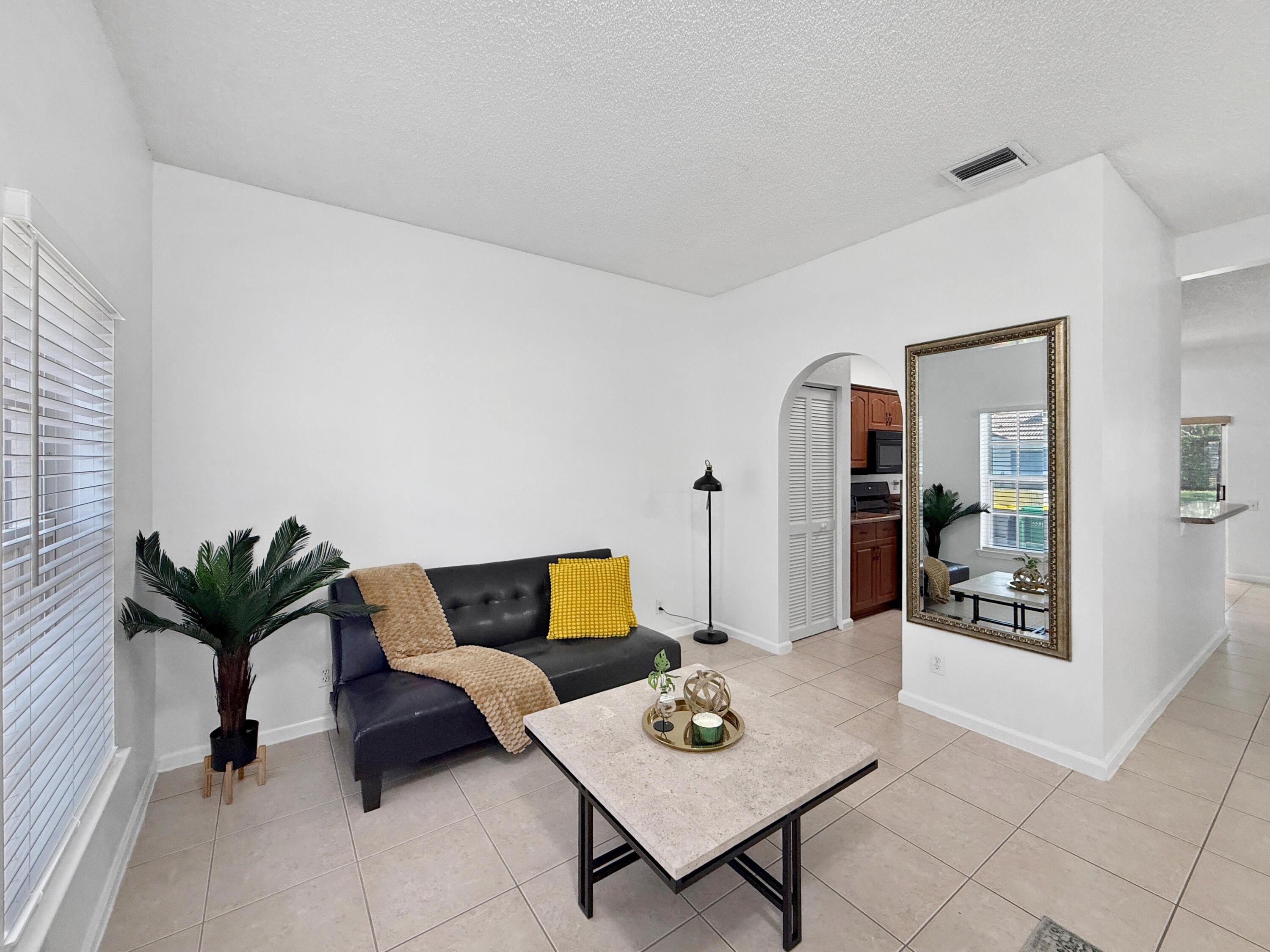 Furnished 2-story town home in Dania Beach for annual lease in gated community. This 3BR/2.5BA/1 car garage plus extensive driveway. Residence features over 1630 sq ft of living space, 9' ceilings, fresh paint, tile & carpet flooring, & tons of natural light. Layout includes formal living & dining rooms, plus a warm kitchen with wood cabinetry, granite countertops, black appliances, & an eat-in bar open to the family/TV room. Enjoy a private screened patio with serene garden views & accordion shutters. Upstairs, the primary suite offers tray ceiling, large walk-in closet, & en-suite bath with soaking tub, separate shower, plus double vanity. Bedrooms 2 & 3 share a spacious bath. Amenities include pool, tennis, clubhouse, & playground. 1 pet under 10 lbs. HOA approval is quick. See today!