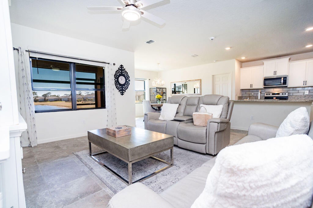 Nestled within the highly desirable and beautifully maintained community of Lost Tree Preserve, this like-new, barely lived-in residence presents an exceptional opportunity to own a thoughtfully upgraded home built in 2021, offering 1,672 square feet of refined living space with three bedrooms and two full bathrooms. Also included a state-of-the-art security system. Perfectly positioned on a scenic Lodge Lake/pond homesite, the property captures serene water views and breathtaking sunset vistas from the living room, kitchen, and primary bedroom, creating a tranquil backdrop for everyday living and entertaining. The open-concept floor plan is both functional and inviting, designed to maximize natural light and seamlessly connect indoor and outdoor living spaces.