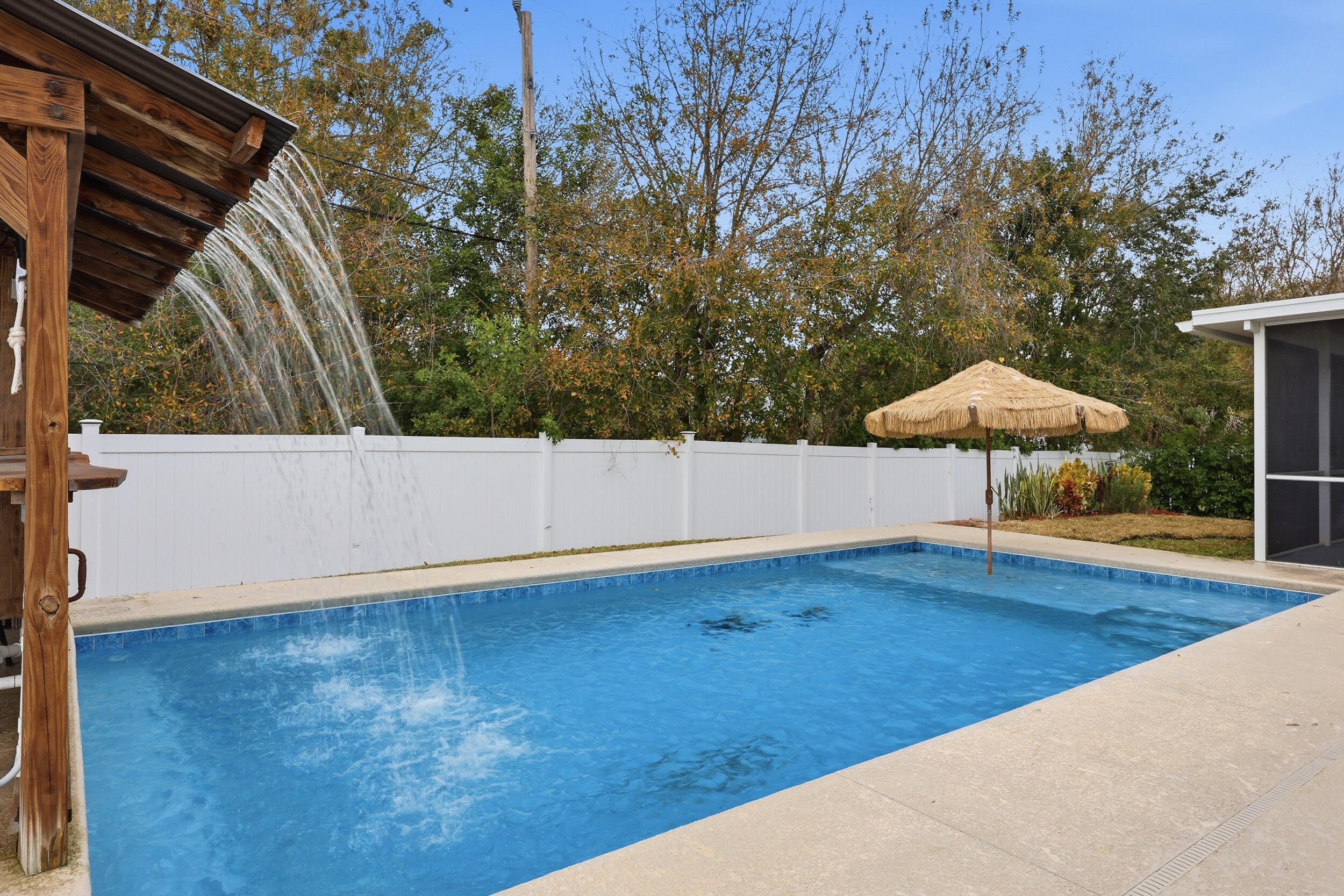 Prime Vero Lake Estates Corner Lot HomeThis stunning, move-in ready 4-bedroom, 2-bath home truly has all the bells and whistles! Situated on a desirable corner lot, it offers both style and functionality in a peaceful setting. Outdoor Living at Its BestEnjoy Florida living with a beautiful, heated saltwater pool, extended screened lanai, and a Tiki hut that's perfect for entertaining or relaxing poolside. The fenced yard provides privacy and plenty of room for family, pets, or gatherings. You'll also love the fruit trees, including avocado, mango, and orange! Ample parking and convenience! The extended driveway easily accommodates your toys, park your boat, RV, or extra vehicles with ease. Step inside to soaring ceilings and an open floor plan! Don't miss this one!