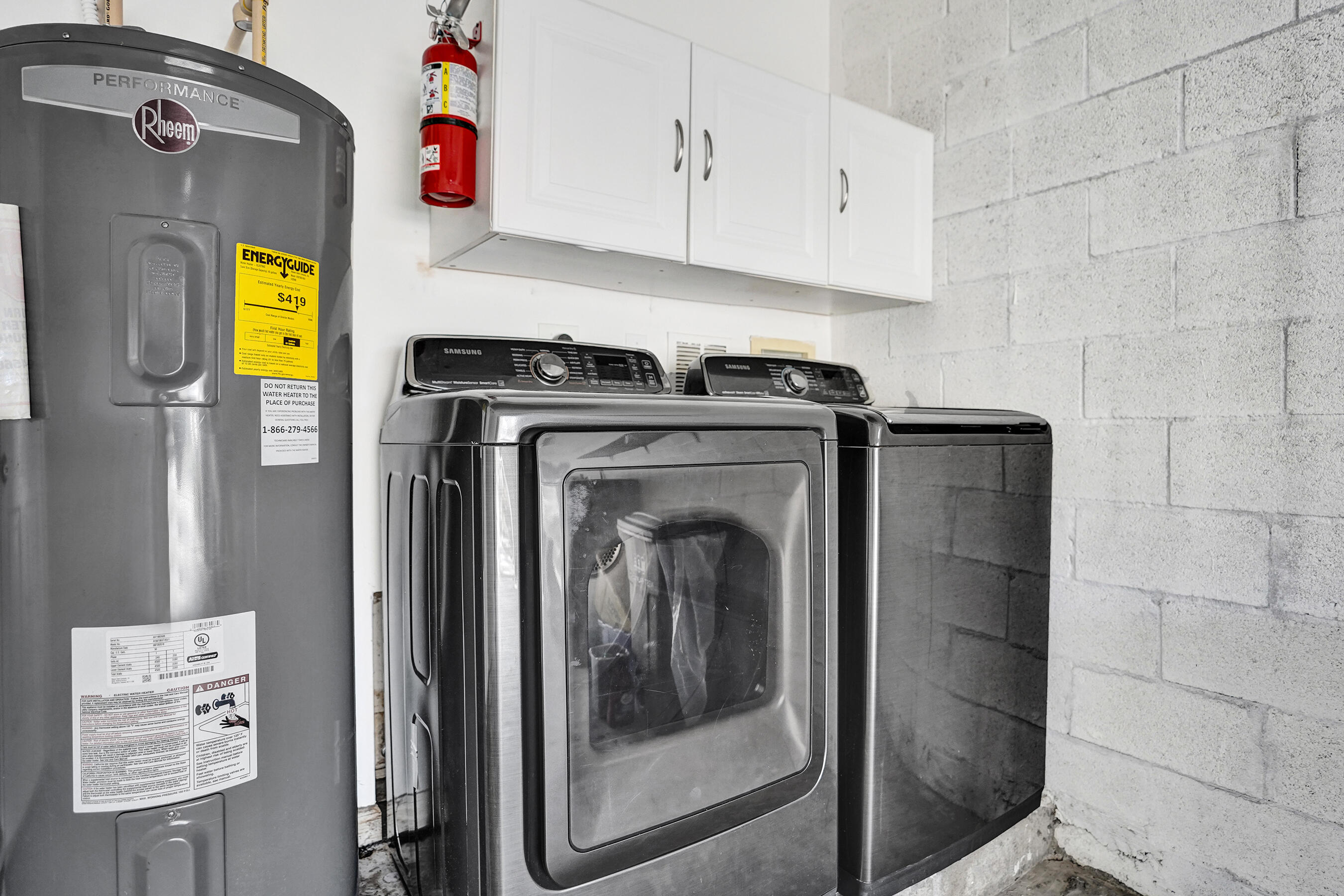 Dishwasher, Dryer, Fire Alarm, Microwave, Refrigerator, Smoke Detector, Washer, Water Heater - Elec