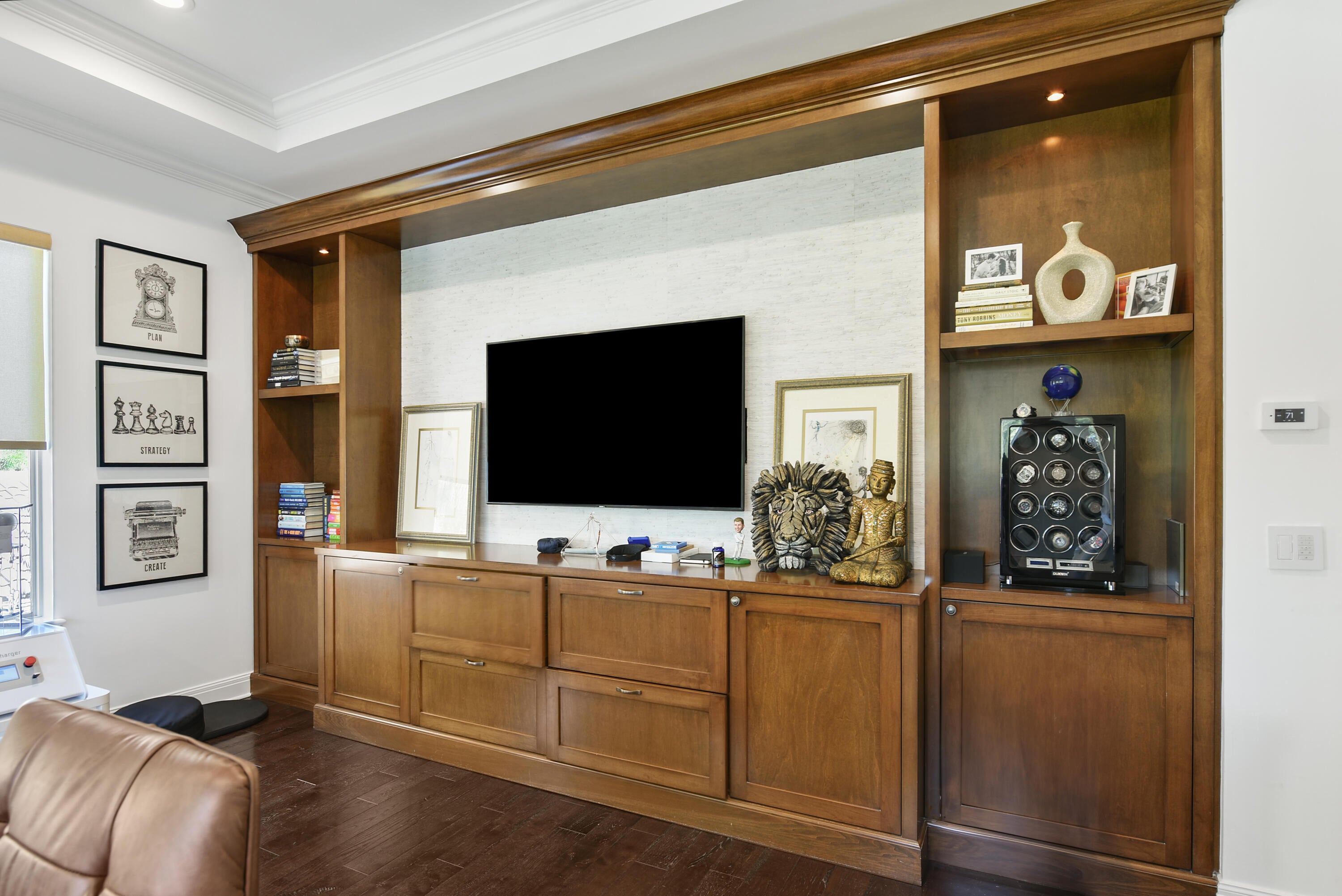 Built-in Shelves, Entry Lvl Lvng Area, Fireplace(s), Foyer, French Door, Cook Island, Laundry Tub, Pantry, Roman Tub, Split Bedroom, Elevator