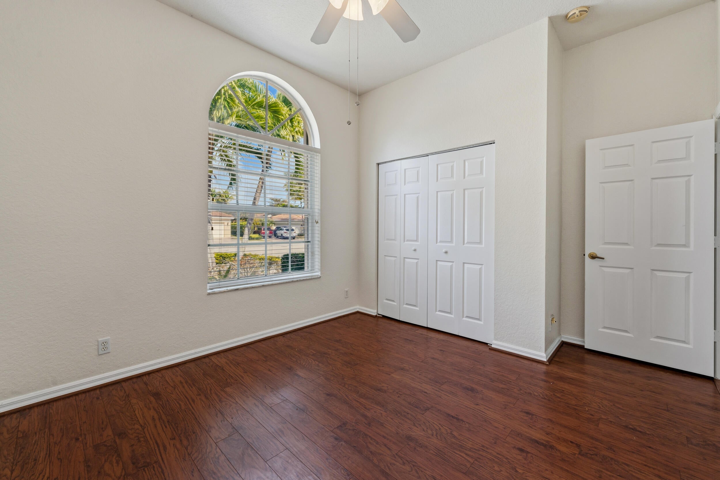 Refined 2-bedroom, 2-bath villa with den located in Palm Beach County, 24/7 guard-gated enclave of Andros Isle. Privately positioned on a quiet cul-de-sac, this semi-attached residence offers a tranquil setting with a fenced backyard and newly refreshed, manicured landscaping. The interior features hard flooring throughout (tile and premium laminate) and a thoughtfully open kitchen appointed with granite countertops, and stainless-steel appliances. The spacious primary suite is complemented by generous closet space and an elegant bath featuring a Roman soaking tub, dual vanities, and elevated finishes. A covered and screened patio provides an ideal extension of the living space, perfect for refined outdoor enjoyment.Additional enhancements include accordion storm shutters and a high-efficiency A/C system. Pet-friendly community. The maintenance program offers exceptional convenience, including professional landscaping and irrigation, 24/7 manned security with in-home monitoring, CATV with high-speed internet and Wi-Fi, exterior painting, and roof pressure cleaning. Residents enjoy a resort-style clubhouse with heated pool and spa, fitness center, sauna, and game rooms, as well as private resident access to Publix via a dedicated roadway.