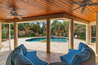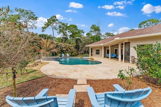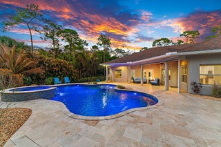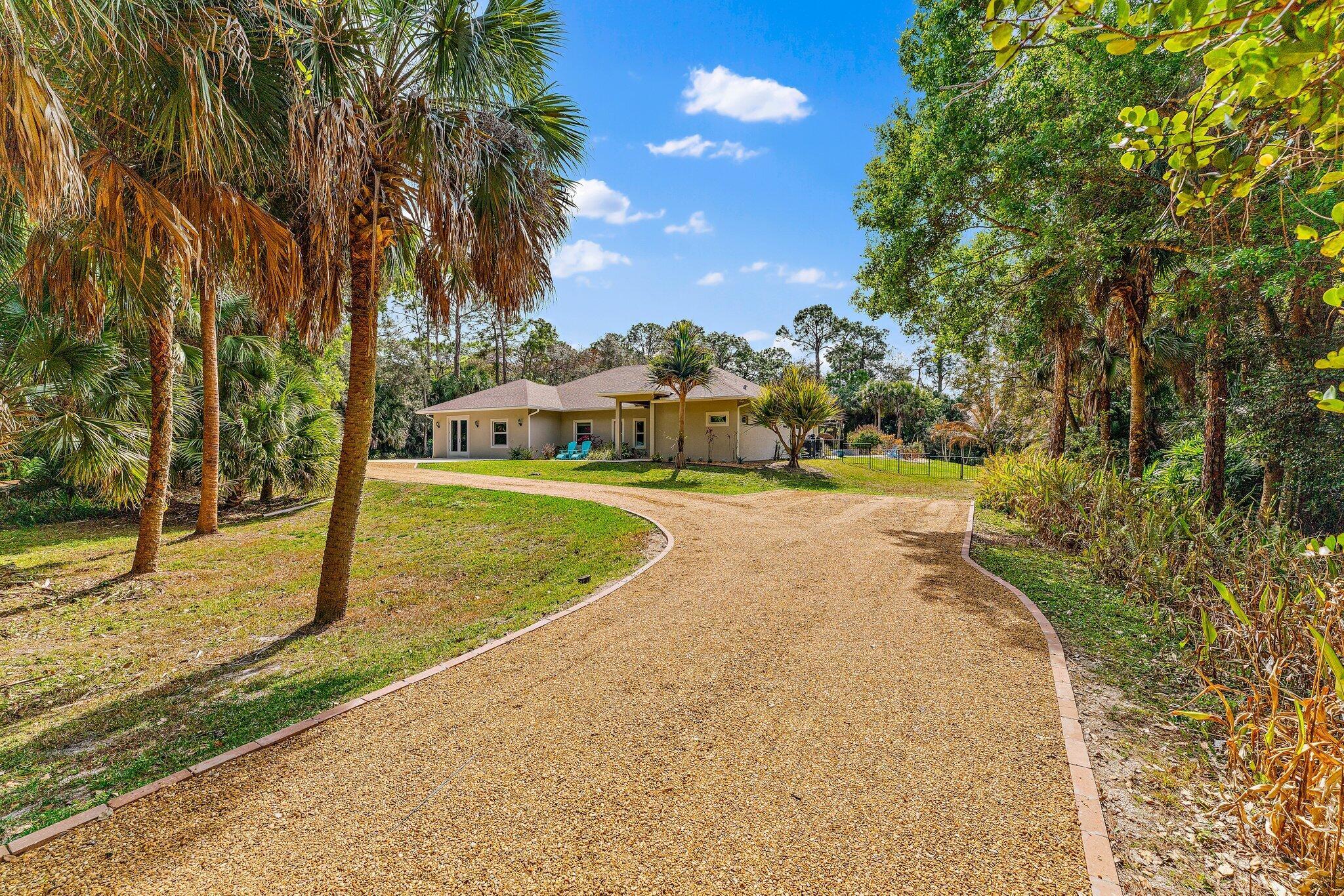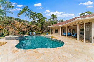 Built in 2017 with exceptional quality and extensively upgraded through 2025, this 5BR 3BA residence delivers superior construction, modern efficiency, and true resort style living in one of the most desirable locations in Jupiter Farms.One of the most unique and valuable enhancements is the 2025 upscale garage conversion, thoughtfully designed as a private in laws suite. The space offers a separate bedroom, living room, and dining area, with the ability to easily add a kitchenette if desired, even though it is conveniently positioned directly adjacent to the main kitchen. Whether used for extended family, guests, multigenerational living, or a private office, this flexible space significantly elevates the functionality of the home.Constructed with insulated concrete block designedsuperior hurricane resistance and up to four hours of fire protection, this home was engineered for strength, durability, and energy efficiency. Complete hurricane rated windows and doors provide full impact protection throughout. The infrastructure is impressive. The home features one top of the line Trane HVAC system with zone control installed in July 2023, providing efficient and balanced climate control throughout the residence. A new hot water heater was added in June 2023 and new well equipment was replaced in 2024. This home is built to perform. The dream kitchen is anchored by a stunning 9 foot island and now features a Wolf gas range connected to a 400 gallon propane tank, a new refrigerator installed December 2024, and Bosch microwave and dishwasher installed December 2025. Silestone countertops were professionally cleaned and sealed in January 2025. The open floor plan flows seamlessly between the dining area, living room, kitchen dinette, and second TV room with custom shiplap accent wall. Spa inspired bathrooms include Silestone countertops in all three baths added January 2025, upgraded Moen fixtures, and new mirrors in two hall bathrooms. Wood look tile runs throughout the main living areas with bamboo flooring in all bedrooms. Outdoor living is truly resort caliber. The saltwater pool with waterfall and integrated hot tub was completed in 2018 and enhanced with a pool heater in 2020. In 2025 the pool received a new variable speed pump and filter motor along with upgraded LED color changing lights. The travertine patio has been resealed and a custom brick firepit creates the perfect gathering space. Professionally designed privacy landscaping with native plants surrounds the property. The in-law suite showcases elegant tile flooring, Marvin hurricane rated doors and windows, marble windowsills, designer lighting, motorized blinds, and an Elfa storage system, all completed as part of the 2025 conversion. Additional highlights include: " 400 square foot hurricane rated foam insulated shed or studio " Circular driveway and brown gravel drive with brick edging added January 2025 " Metal fenced backyard with locking gates " Retractable screens on covered porch " Covered front porch " Ring doorbell and keypad entry " Full exterior power washing in 2026 including roof, patios, shed, gutters, and fencing Located east of Jupiter Farms Road and biking distance to Riverbend State Park, this property offers privacy, structural integrity, technology, and refined living all in one. Also equipped with a Tesla electric car charger and a 220 outdoor outlet for RV hookup. This is not your typical Farms home. The construction quality, system upgrades, flexibility of the in laws suite, and meticulous level of maintenance truly set it apart.