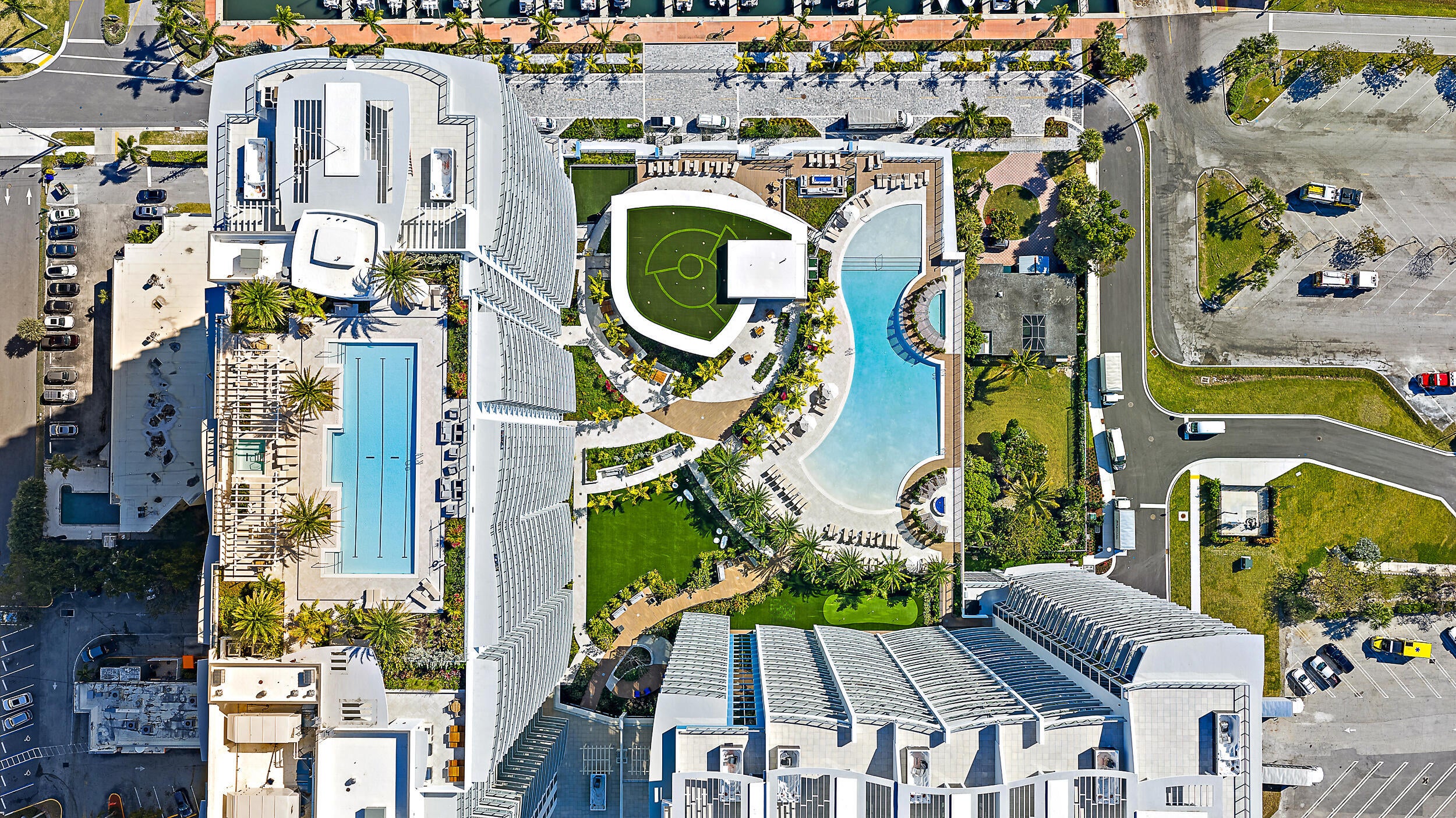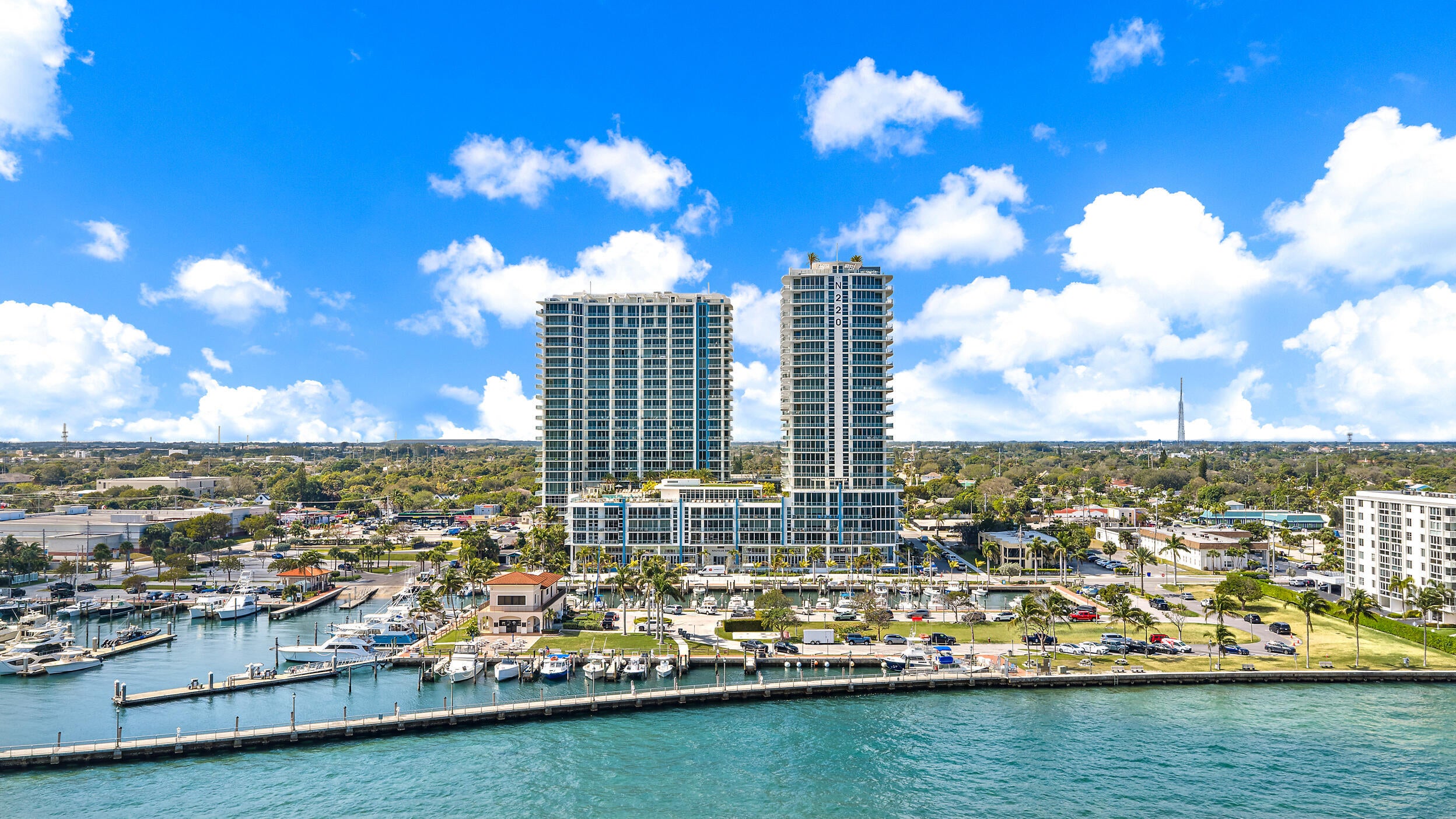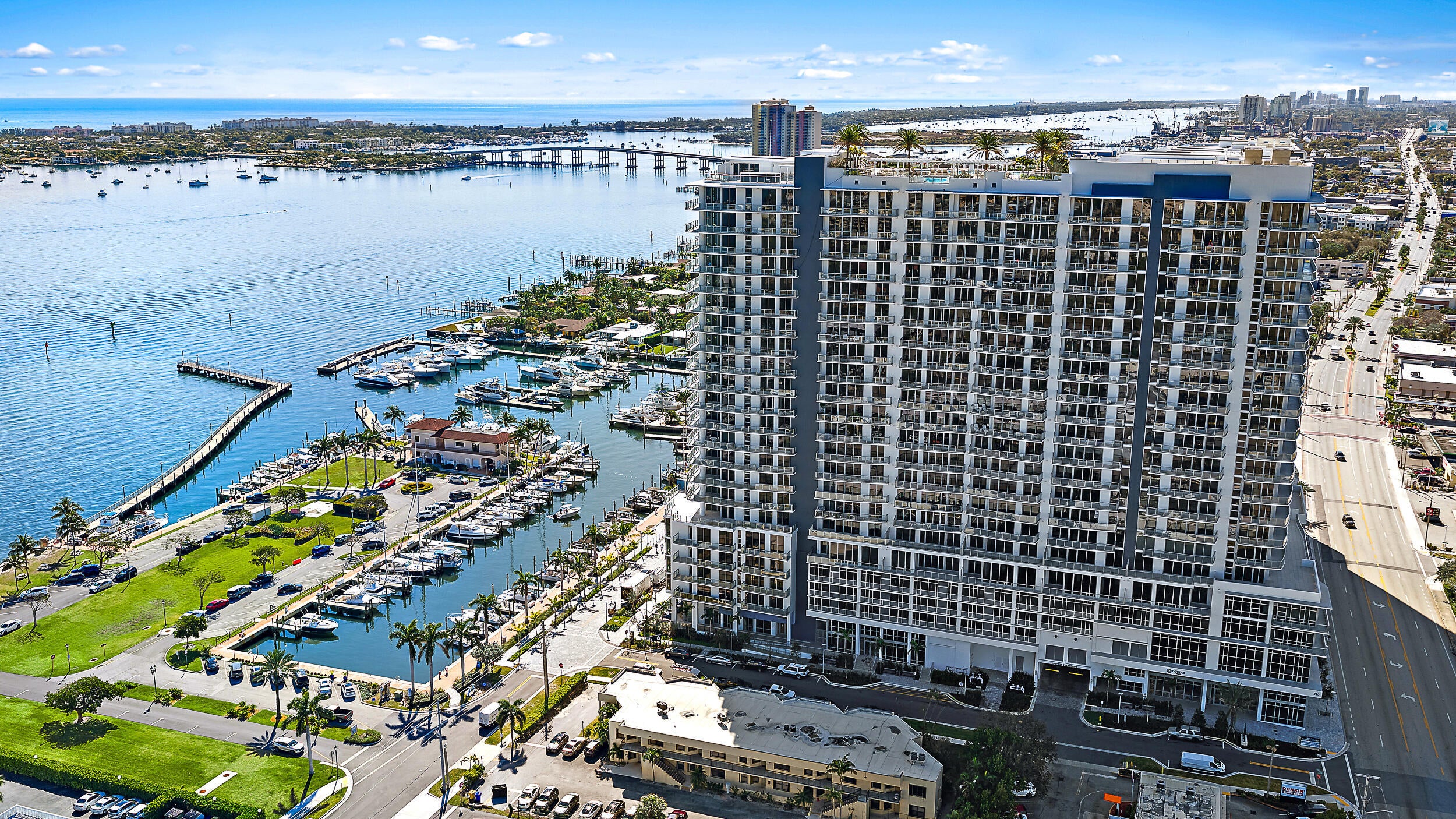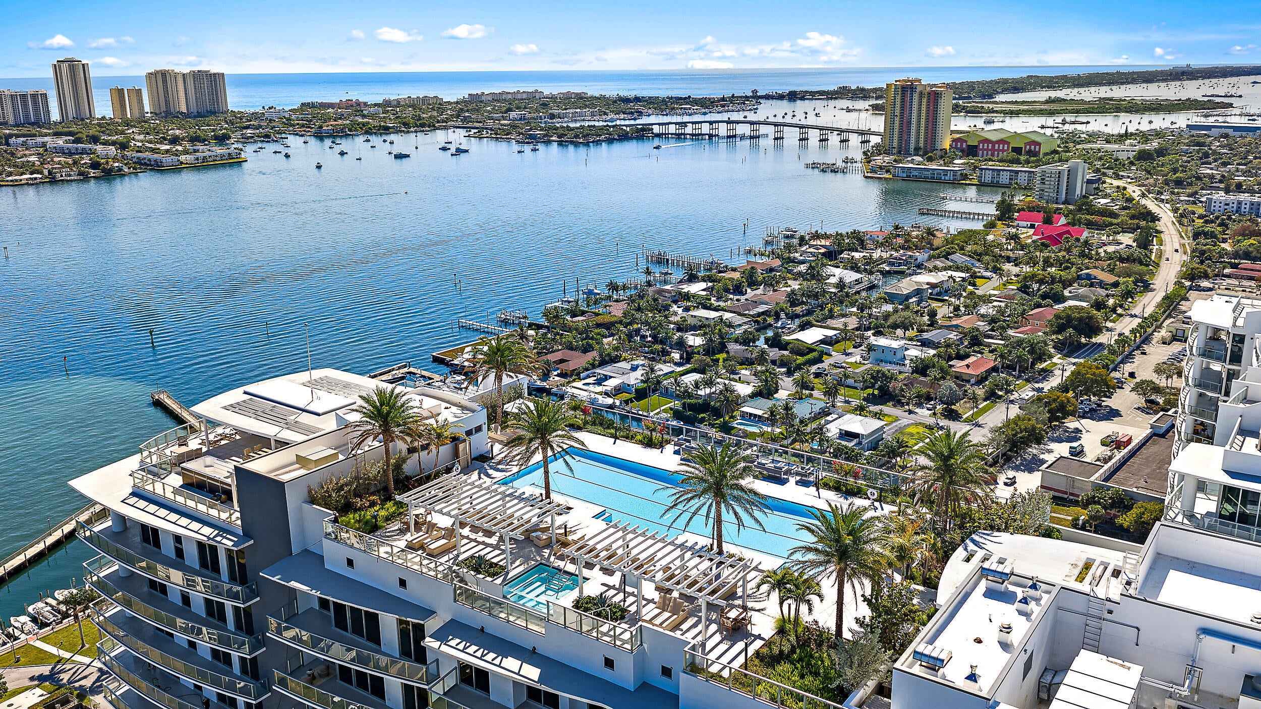 Perched on the 15th floor, this brand-new waterfront residence at Nautilus 220 captures sweeping Atlantic Ocean, Intracoastal, and western sunset views. The 2-bedroom, 2.5-bath layout features 10-foot ceilings, an open-concept design, European porcelain flooring, custom cabinetry, quartz surfaces, and spa-inspired baths. The chef's kitchen showcases Miele appliances and a striking quartz waterfall island, while the south-facing terrace delivers panoramic sunrise-to-sunset vistas over Peanut Island and the resort pool deck. Included are two garage parking spaces (one EV-equipped) and a private storage unit.Nautilus 220 offers a 1-acre amenity deck with pool, spa, firepit lounges, and grill stations, plus a rooftop lap pool, state-of-the-art fitness center, sauna and steam rooms, bowling alley, theater, golf simulator, beach access on Singer Island, concierge services, and waterfront dining by Celebrity Chef David Burke.