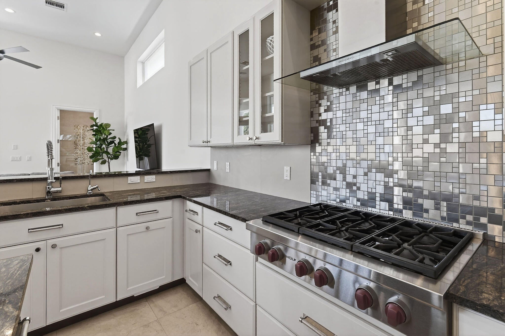 Auto Sprinkler, Built-in Grill, Cabana, Covered Balcony, Custom Lighting, Deck, Open Patio, Summer Kitchen, Zoned Sprinkler