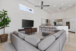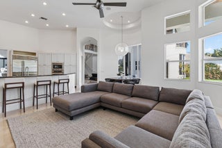 Tucked along a peaceful waterfront in Palm Beach Gardens, 12860 Inshore Drive captures the essence of refined coastal living, where mornings begin on the water and evenings are spent entertaining under the palms. With effortless access to the Intracoastal and the open ocean, boating becomes a natural extension of daily life, while the absence of HOA fees offers a rare sense of freedom and privacy. Inside, the home is beautifully curated for comfort and sophistication. A private first-floor office offers a quiet retreat for work or study, while the primary suite is designed as a true sanctuary with dual bathrooms, expansive walk-in closets, and a dedicated fitness area. Marble flooring, impact glass, and smart home technology elevate both the aesthetic and functionality of the residence.The upper level provides gracious accommodations for family and guests with two ensuite bedrooms, an additional bedroom, and a versatile loft ideal for a lounge or media space. Outside, the setting feels like a private resort, with a heated saltwater pool and spa framed by lush tropical landscaping. The outdoor kitchen, featuring stainless steel cabinetry, a gas grill, cocktail station, and refrigerator, invites effortless alfresco dining and waterfront entertaining. Minutes from Palm Beach Gardens' renowned golf courses, pristine beaches, and upscale dining and shopping, this exceptional home offers a rare blend of luxury, privacy, and the ultimate Florida boating lifestyle.