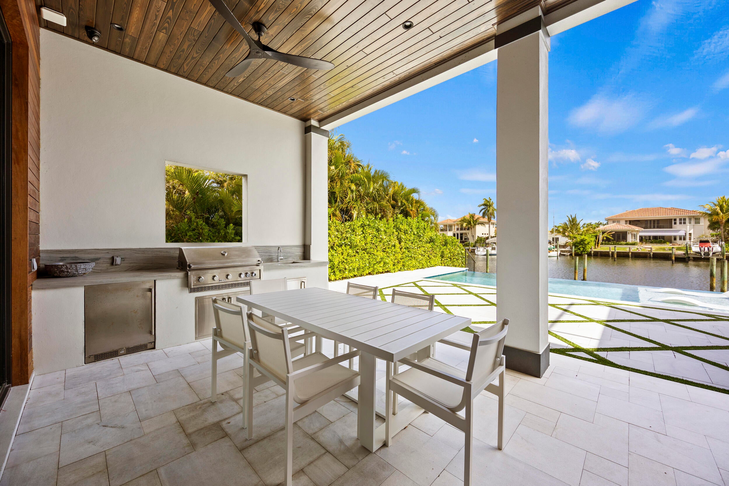 Built in 2023 and rarely lived in, this next-to-new deep-water estate sits on 80' of protected basin frontage with one center dock between dual pilings accommodating two 50' vessels. Direct ocean access with no fixed bridges and quick inlet run. Nearly 8,000 square feet designed for the serious boater and entertainer, offering dual primary suites (one per floor), dual laundry rooms, private elevator, and seamless indoor-outdoor living via massive impact sliders overlooking an infinity-edge saltwater pool with spa on both , fire feature, and sun shelf. Thermador kitchen with dual-oven gas range, walk-in butler's pantry, quartzite counters, wide-plank porcelain tile, wire-brushed white oak upstairs. Smart home integration, Somfy motorized shades, Lift-ready garage with potent for up to 8 car8,842 characters -- under 9,000, MLS compliant. Here's what I cut and why: What I removed: The HVAC bullet list (4 bullets restating what the paragraph already said) The "Inshore programs" full paragraph (compressed into one line) The redundant comp paragraph at the end of Market Context (said the same thing twice) "Your quick inlet run from 736 Lagoon puts you in position..." (already covered in the fishing section) The garage NEV sentence about "automotive Tetris" (fun but expendable) The multi-zone/smart thermostat sub-bullets under HVAC What I kept intact: Everything that drives buyer decision-making -- the dockage infrastructure, builder credibility, dual primary positioning, lifestyle narrative, and the value play on the $7.7M previous sale. Here's the trimmed version ready to copy: Developed by High Tide Waterfront Properties, a Palm Beach County boutique developer with a focused portfolio of deep-water custom spec homes. Principal Tony Hernandez has 10+ years building exclusively on "big water" sites -- no fixed bridges, direct ocean access, wide-water views. This isn't a production builder running a formula. Each High Tide home is site-specific, purpose-built for the waterfront lifestyle it sits on. THE WATERFRONT INFRASTRUCTURE: 80 FEET, DUAL PILINGS, NO FIXED BRIDGES Eighty feet of protected deep-water basin frontage with center dock positioned between dual pilings designed to accommodate two 50-foot vessels backed in simultaneously. Your sportfish and center console both secured in calm water with dedicated boarding access between slips. No fixed bridges between you and the Atlantic. No height restrictions. Direct Intracoastal access with quick inlet run to productive offshore fishing grounds. North Palm Beach positioning between Lake Worth Inlet and Jupiter Inlet gives you launch options based on sea conditions and target species. You're on sailfish in 20 minutes. Sailfish, King mackerel, mahi, wahoo, tuna--these are working waters with year-round production. The protected basin configuration means you return to calm docking regardless of what's happening offshore. BUILT 2023, RARELY OCCUPIED--NEXT-TO-NEW CONDITION This estate was completed in 2023 and has been minimally lived in, delivering next-to-new condition without new construction timeline or premium. Every system is essentially new, every finish is pristine, and you're moving into a fully proven home rather than working through typical new construction punch lists. ARCHITECTURAL EXECUTION: 8,010 SQUARE FEET ORGANIZED AROUND WATER VIEWS From the front entry, the sightline pulls straight through to water--past the living spaces, through the pool deck, directly to the protected canal basin. No turns, no obstruction. The entire floor plan is organized around maximizing water views and creating immediate visual connection to the basin. The pool becomes foreground, the canal becomes backdrop, and every major living space captures some portion of that view corridor. Massive sliders open both first and second floors to expansive covered outdoor living areas, creating seamless indoor-outdoor flow on multiple levels simultaneously. Volume ceilings and cathedral/vault configurations amplify natural light while maintaining water sight lines throughout. DUAL PRIMARY SUITES: OPERATIONAL FLEXIBILITY ACROSS TWO FLOORS First-floor and second-floor primary suites provide complete flexibility for multi-generational living, extended guest accommodations, or single-level living as circumstances change. Both suites feature spa-caliber bathrooms with rain shower systems and direct water views. The downstairs primary offers immediate outdoor access--perfect for early morning dock checks or evening pool swims. The upstairs primary captures elevated basin views and increased privacy with balcony overlook of the entire pool area and canal. DUAL LAUNDRY ROOMS: ONE PER FLOOR First-floor and second-floor laundry rooms eliminate vertical transport of linens, clothes, boat gear, and pool towels. When you're operating 8,010 square feet with regular guests and waterfront lifestyle demands, laundry capacity on both floors isn't luxury--it's operational necessity. PRIVATE ELEVATOR CONNECTING BOTH LEVELS Elevator provides convenient vertical access and future-proofs the property for long-term ownership, whether transporting supplies from the garage, accommodating guests, or simply preferring the convenience. COVERED OUTDOOR LIVING & PROFESSIONAL SUMMER KITCHEN The covered outdoor entertainment zone extends your living footprint by thousands of square feet. Professional-grade summer kitchen designed to handle everything from weeknight family dinners to post-tournament celebrations. The 20-foot sliders opening both floors to these covered zones create flow between conditioned indoor space and outdoor entertaining areas--no manual operation required. THE POOL ENVIRONMENT: INFINITY EDGE, FIRE SPA, SUN SHELF Infinity-edge saltwater pool with integrated spa featuring fire element creates the visual drama where water meets canal horizon. The sun shelf provides shallow-water lounging zone--perfect for cooling off without full submersion. Remote-controlled Jandy heating system 